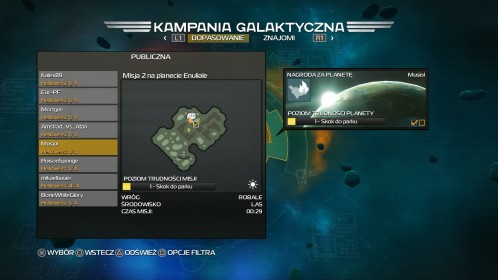 W zależności od tego, czy czujemy na siłach i ile mamy wolnego czasu, gra oferuje nam planety z dwunastostopniowym poziomem trudności. Oczywiście im trudniej, tym więcej zadań do wykonania, więcej obcych do wyeliminowania i lepsze nagrody na koniec misji.