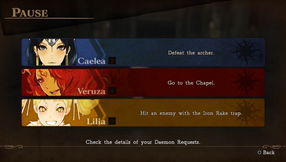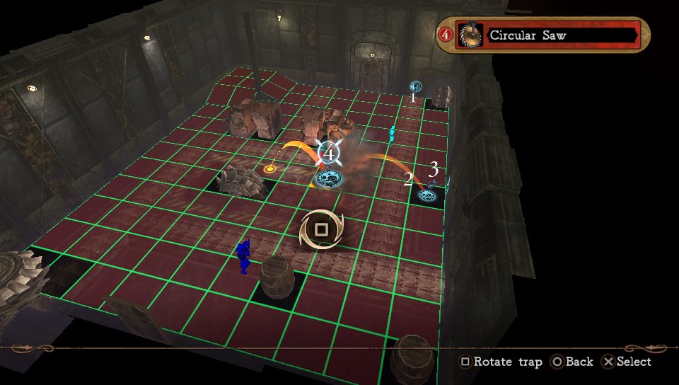 Tereny, po których przyjdzie się poruszać córce diabła składają się z kilku, połączonych korytarzami, pomieszczeń. W każdym z nich należy zastawić pułapki tak, by zakończyły żywoty przeciwników w jak najbardziej skuteczny sposób. Przy ustawianiu zasadzki trzeba uwzględniać zróżnicowanie oponentów. Przy wejściu każdego z nich pojawia się krótka scenka, podczas której, po naciśnięciu