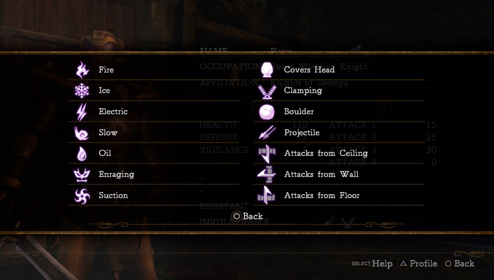 , można zapoznać się z biografią postaci oraz silnymi i słabymi stronami. Znajomość tych elementów znacząco wpływa na podejście do eliminowania. Niektóre postaci są niewrażliwe na ataki z podłogi i takich będą zgrabnie unikać, ale podatne na elektryczność, czy też obiekty wysuwające się ze ścian. Przy doborze środków siania zagłady należy brać pod uwagę profil przeciwników.