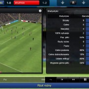 Mając gotową taktykę przystępujemy do meczu. Silnik meczowy 3D prezentuje się zaskakująco dobrze i dokładnie odzwierciedla to, co możemy oglądać na PC. Oczywiście, oprawa graficzna nie będzie tak dobra, jak w grach typu FIFA, ale jak na menadżera piłkarskiego prezentuje się przyzwoicie. Mogę za to mieć kilka zastrzeżeń do samego przebiegu meczu. Najbardziej irytuje mnie to, że na boisku jest jedna piłka. Komicznie wygląda sytuacja, gdy zawodnik wykonujący rzut karny, musi biec do linii bocznej po piłkę, wrócić i dopiero może wykonać „jedenastkę”. W trakcie gry jest zaskakująco dużo słupków, poprzeczek czy wybić z linii bramkowej. Kontuzje nie pojawiają się nagminnie, często zdarzają się natomiast stłuczenia, powodujące zejście piłkarza z boiska, ale na następny mecz (w większości przypadków) taki zawodnik jest już gotowy. Ciekawym rozwiązaniem jest możliwość utworzenia dwóch okienek w trakcie meczu. W jednym możemy oglądać przebieg spotkania, a w drugi dowolnie wybrane statystyki.