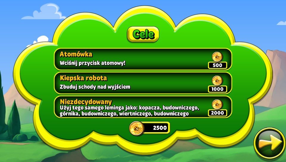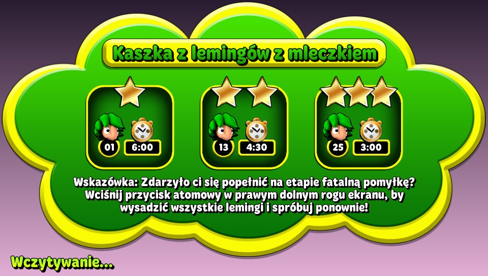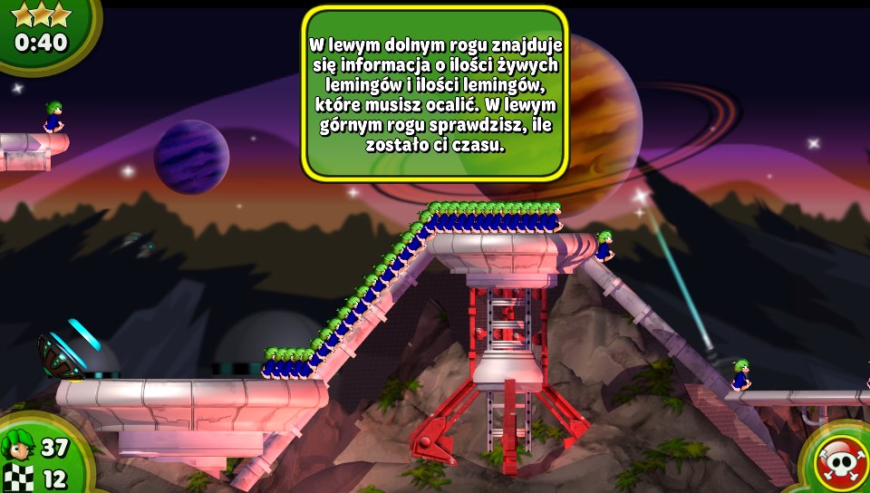 + Kolorowa grafika + Przyjemna muzyka + Lemingi! + Polska wersja językowa + Przyjemność z rozgrywki + Gra w sam raz na krótkie posiedzenia z konsolą + Ciekawe etapy, wymagające myślenia