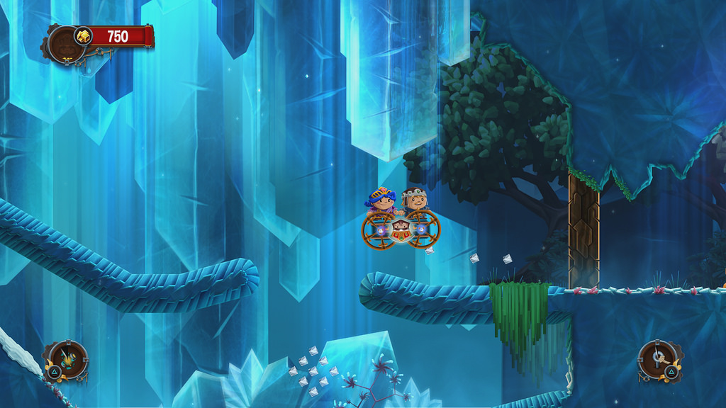Hasłem przewodnim nowej produkcji studia Frima jest: “współpraca przy współpracy”. Jak już wspomniałam, przez całą grę nasi protagoniści muszą ciągnąć za sobą chariota. MUSZĄ.. Tak więc jego transport będzie o wiele łatwiejszy, gdy naszą przygodę będziemy kontynuować we dwójkę, a nie w pojedynkę. I tak dzięki kooperacji, obaj gracze będą mogli używać lin, aby wykonać odpowiednie ruchy, które pozwolą im odnieść sukces. Co więcej, tylko tytułowy rydwan może zbierać wszystkie skarby, które dają korzyści obu grającym. Przed rozpoczęciem przygody każdy gracz ma możliwość wybrania jednego unikalnego gadżetu, który oczywiście pozytywnie wpłynie na pracę dwuosobowego zespołu.