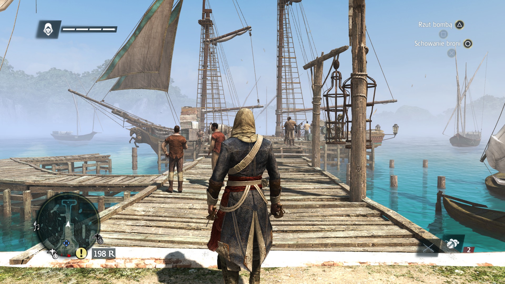 Najbardziej zachwyca jednak to, z jakim przemyśleniem została stworzona cała produkcja. Wszędzie mamy co robić. Jestem graczem, który bardzo lubi zwiedzać mapy i poznawać najgłębsze tajemnice. Tutaj wiedziałem, że każde moje znalezisko wpłynie pozytywnie na dalszą rozrywkę. Polowanie na zwierzęta ulepszy mój ekwipunek, częste abordaże wyposażą mój statek w lepszy sprzęt i pozwolą szukać skarbów pod wodą, a na lądzie mogę spacerować po mieście, szukając przygód albo zabawić się w łowcę głów. Gra faworyzuje zbieractwo i zachęca do eksploracji.