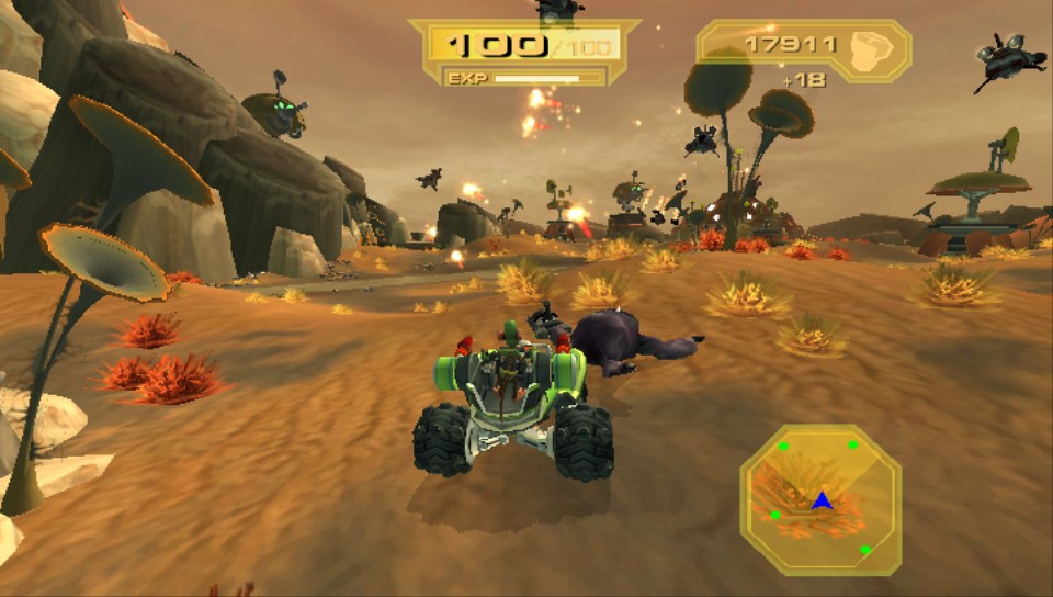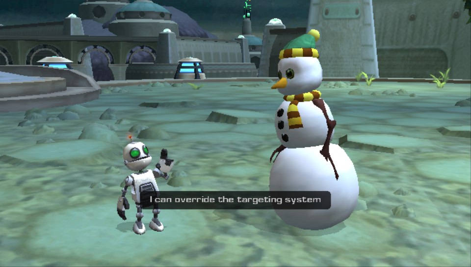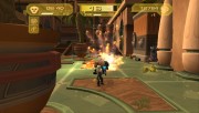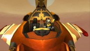 Do strony wizualnej również przeważnie nie można się przyczepić. Kolorystyka tytułu jest bardzo przyjemna, modele postaci prezentują się bardzo dobrze i na „Ratchet & Clank 3” po prostu przyjemnie się patrzy. Jedyne zastrzeżenia pojawiają się, kiedy na ekranie wiele się dzieje. Wtedy Vicie zdarza się zakrztusić i gracze muszą oglądać mały pokaz slajdów. Na szczęście nie trwa on długo, raptem kilka sekund, ale warto to wziąć pod uwagę, decydując się na zakup recenzowanej produkcji. Strona dźwiękowa natomiast, standardowo dla serii, jest przeciętna. Niczym szczególnym nie przeszkadza, ale też nie jest wybitna.
