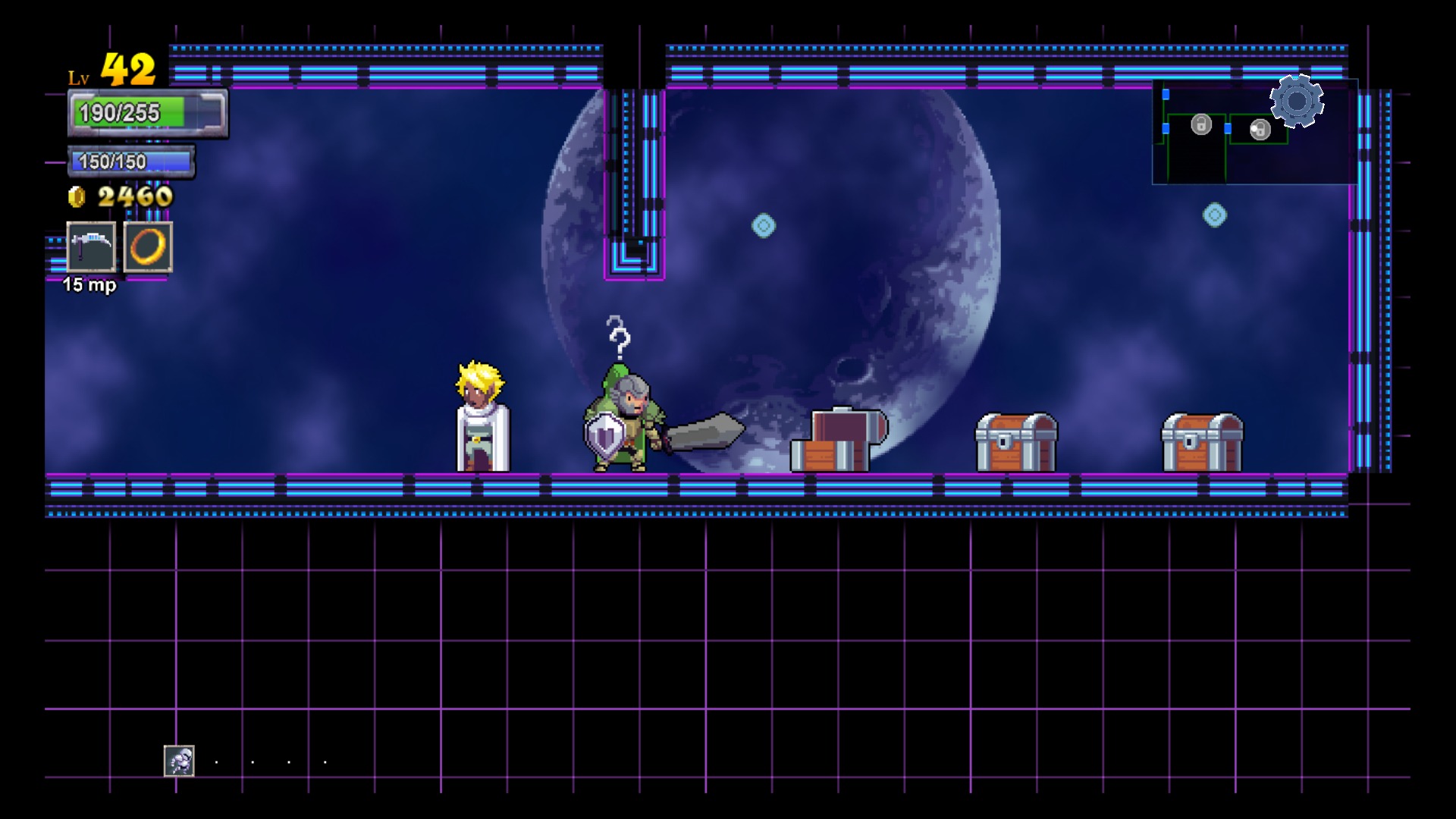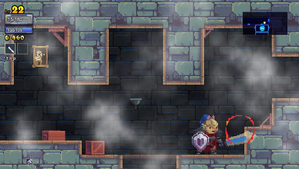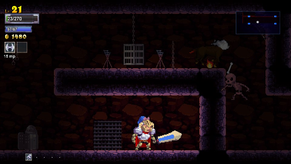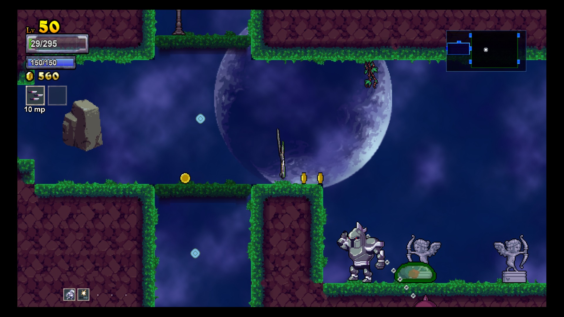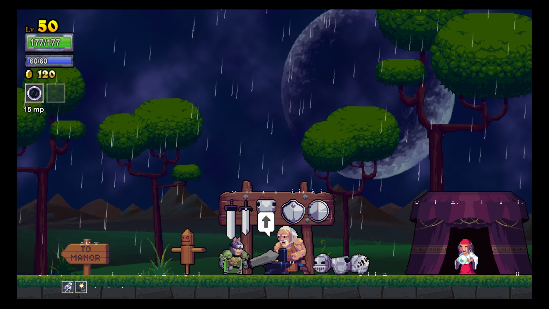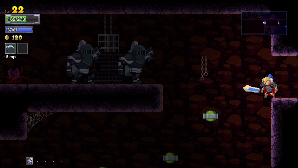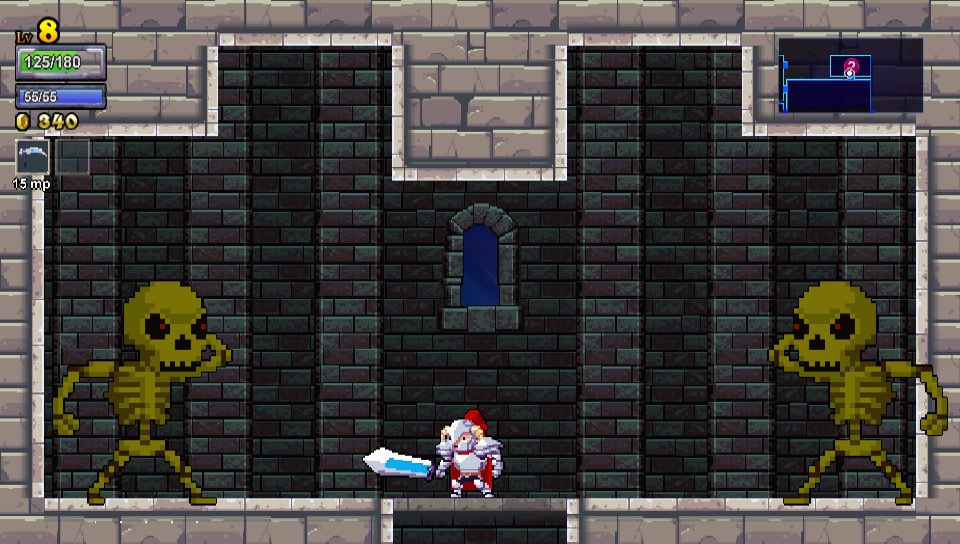 Każde nasze starcie rozpoczynamy na dworku przed zamkiem, gdzie znajdują się: kowal, czarodziejka, architekt oraz Charon. U kowala możemy zakupić elementy ekwipunku – hełm, zbroje, broń i pozostałe niezbędniki rycerza. U czarodziejki dokonujemy zakupu run, wzbogacających naszą postać o pewne zdolności. Zanim jednak wykupimy interesujące nas elementy, wcześniej musimy znaleźć je w zakątkach zamku. U architekta z kolei mamy możliwość zamknięcia zamku, oczywiście za odpowiednią sumę pieniędzy. Pewnie część z Was zastanawia się teraz, o co chodzi.. Zamknięcie zamku? Spieszę z wyjaśnieniem. Otóż, gdy już się uzbroimy wyruszamy na podbój zamku. Na wejściu do tej twierdzy spotykamy jeszcze Charona, który za wpuszczenie nas do środka zabiera całą, pozostałą nam gotówkę. Tak, więc zawsze należy starać się wydać wszystkie uzyskane monety, bowiem nie można zostawić ich na później. Gdy już jesteśmy w środku naszym oczom ukazują się losowo wygenerowane komnaty. O czym to świadczy? A no o tym, że w przypadku naszego zgonu, wybraniu kolejnego następcy, nasze ponowne wejście do zamku nigdy nie będzie miało takiego samego schematu. Owszem po kilku godzinach gry może zdarzyć się tak, że dany układ już wystąpił podczas naszych zmagań. Niestety ciężko to opisać w dokładny sposób, trzeba to po prostu zobaczyć. I w tym momencie rola architekta powinna być już znana. Otóż daje on możliwość zablokowania zamku przez co, kolejny potomek będzie mógł przemierzać korytarze zamku w takim schemacie, jaki przypadł jego poprzednikowi.