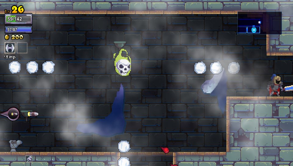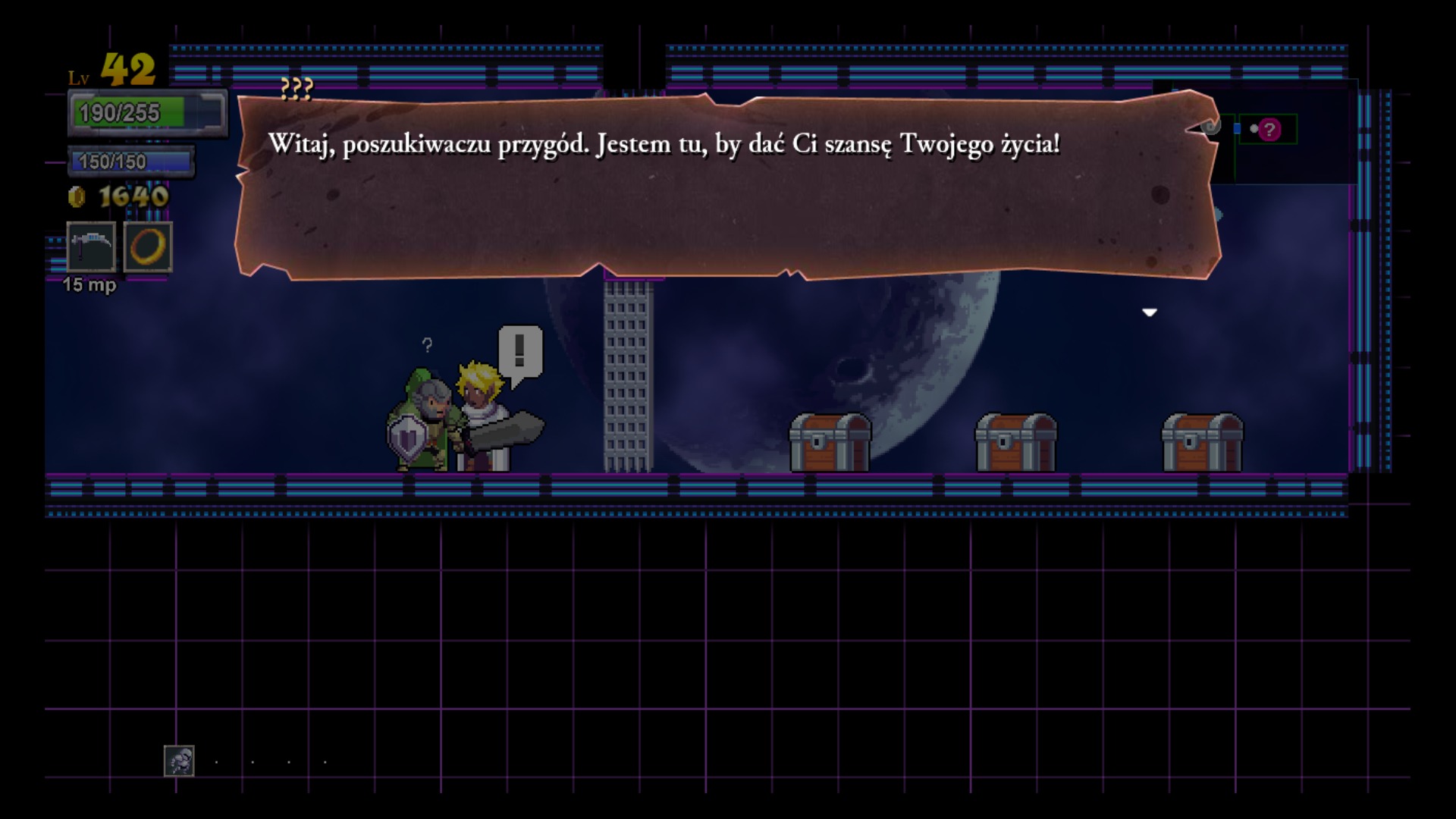 Słów kilka na temat samej rozgrywki. Nigdy wcześniej nie miałam okazji zagrać w jakąkolwiek inną grę przypominającą swoją mechaniką Rogue Legacy. Dlatego też, przez pierwsze 15 minut zabawy ciężko było mi się zorientować, o co w tym wszystkim tak naprawdę chodzi. I tak pierwszy zgon, kolejny, kolejny, kolejny … i kolejny. Zaczęłam się troszkę przy tym irytować. Nie wiedziałam czy może poziom trudności tej gry jest tak wysoki, czy może moje zdolności manualne nie są aż tak dobre, aby się z nią zmierzyć. Owszem udawało mi się przejść kilka zakamarków, ale wszystko zazwyczaj kończyło się rychłą śmiercią. Niemniej jednak powolutku zdobywałam swoje pierwsze monety.
