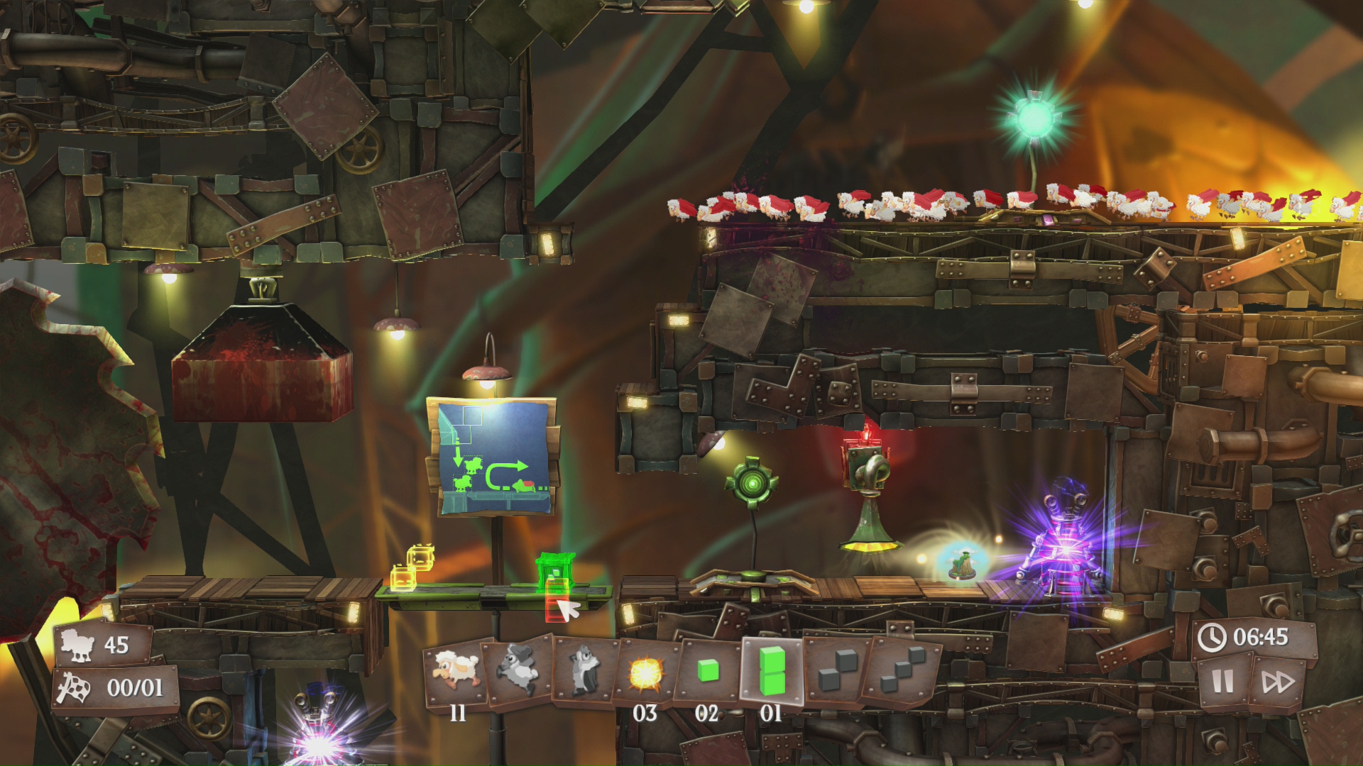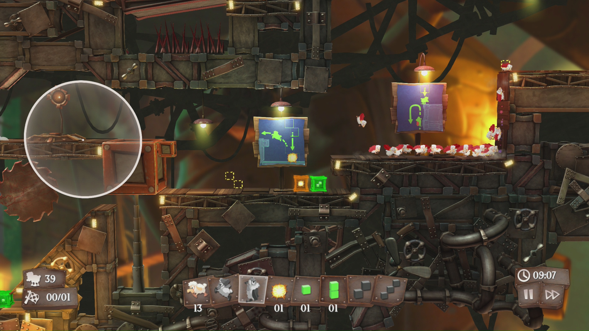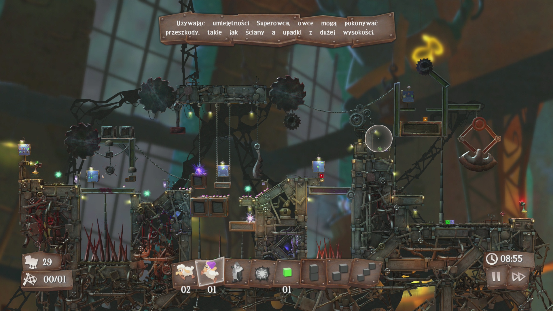 Poziomy są różnorodne i wymagają od nas niezłego główkowania. Jak zawsze w tego typu grach, im dalej w las, tym więcej drzew. Poziom trudności rośnie z planszy na planszę. Etapy, które na początku pokonywaliśmy za pierwszym razem zmieniają się w coraz bardziej wymagające łamigłówki. Czasem trzeba będzie działać szybko, czasem trzeba będzie poczekać aż wszystkie owce staną na platformie, by ją opuścić. Z czasem przyjdzie nam kontrolować więcej niż jedno stado, a wtedy rozgrywka zaczyna być naprawdę wymagająca. Oczywiście w każdej chwili czas możemy zatrzymać, by przyjrzeć się mapie, zobaczyć gdzie porozstawiane są pułapki, czy obmyślić strategię. Niestety w czasie pauzy nie możemy wydawać rozkazów. Jak już wszystko obmyślimy, to czas możemy też przyspieszyć, aby nie musieć czekać aż wszystkie zwierzaki przejdą swoją ścieżkę. Mamy też pełną kontrolę nad kamerą. Obraz możemy swobodnie przybliżać i oddalać, aby mieć widok na to, co jest potrzebne. Jedną gałką analogową poruszamy kamerą, a drugą kursorem.
