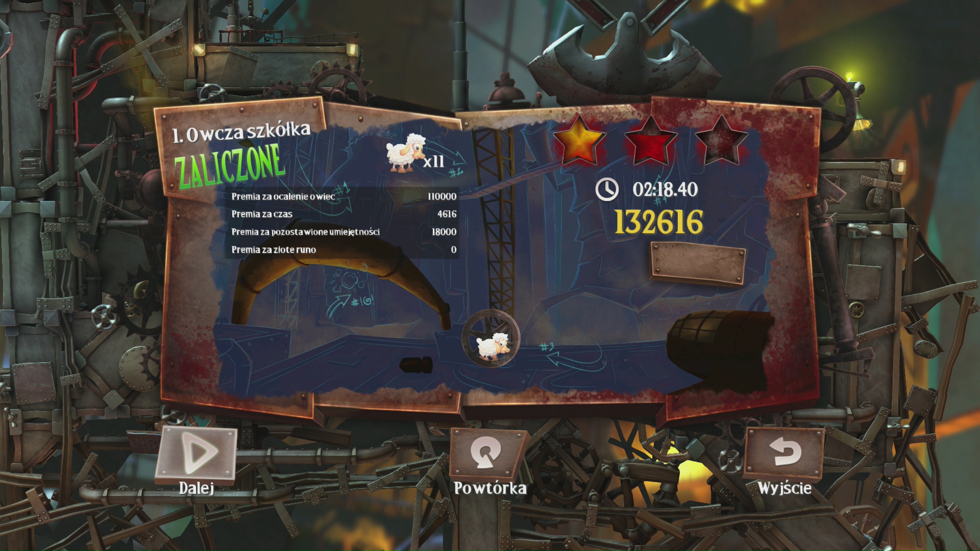 + Ciekawe poziomy, wymagające główkowania + Bardzo dobra animacja owiec + Duża ilość strojów do odblokowania
