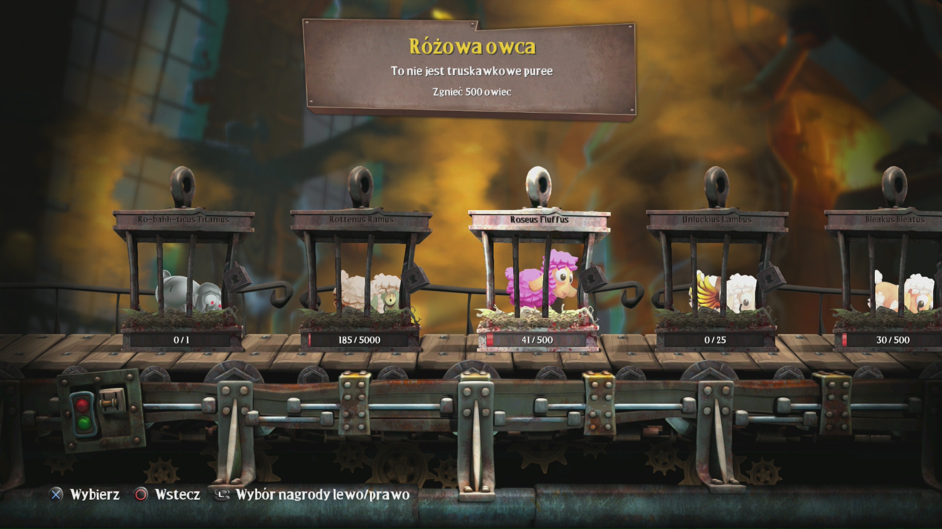 W grze dostępnych mamy wiele zadań, za których wykonanie odblokowujemy nowe stroje dla naszych zwierzaków. Ubiory są dość wymyślne – od prostego przefarbowania wełny na kolorowo, przez zombie owce na 8-bitowym wyglądzie skończywszy. Zadań jest sporo, więc trochę czasu zajmie nam ich ukończenie. Niektóre wymagają od nas przejścia konkretnych etapów na 3 gwiazdki, inne zgniecenia 500 owiec, także jest co robić. Sama gra zawiera sporo poziomów i na pewno starczy wam na długo.