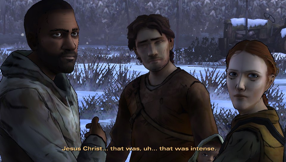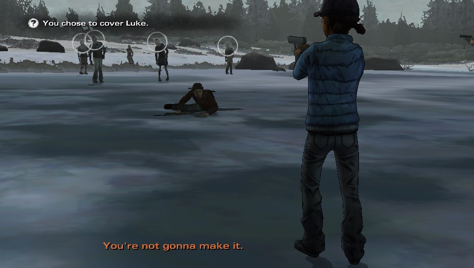 Jednak nie same decyzje tworzą specyficzną przygodówkę kreowaną przez Amerykanów. W The Walking Dead mają miejsce także krótkie sekwencje QTE, podczas których należy nacisnąć odpowiednie przyciski, bądź wychylić gałkę analogową w określonym kierunku. Nie jestem zwolennikiem takich momentów w grach, ale nie da się ukryć, że w recenzowanej produkcji są one naprawdę uzasadnione, sensowne i nie frustrują.
