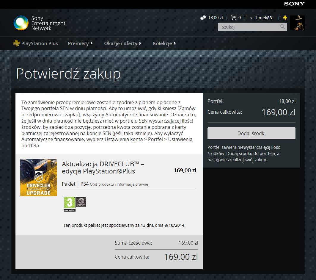 Co do polskiej ceny, na stronie PS Store udało mi się znaleźć owy pakiet aktualizacji gry za 169zł.