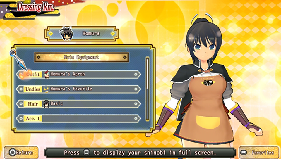 Seria Senran Kagura jest znana z dostarczania specyficznego rodzaju rozrywki, skierowanego głównie do mężczyzn. Tym razem będziemy mogli podziwiać wdzięki pań wyciągniętych żywcem z mangi w zmaganiach kulinarnych. Naszym głównym zadaniem będzie przyrządzenie jak najlepszego dania w rytm podkładu muzycznego. Wszystko zostało tak przedstawione, aby wyglądało na pojedynek dwóch bohaterek, gdyż według twórców gotowanie i walka to prawie to samo.