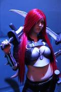 S: Skrajnie, postacie ultra słodkie i wręcz chore psychicznie (Jibril z No Game No Life, a planuję też Yuno Gasai z Mirai Nikki), do gustu przypadły mi postacie również te w stylu seksownych badassów (Katarina z LoL’a, w planach mam Akali), mniej lub bardziej mroczne (planowana Syndra z LoL’a, marzenie – Sylvanas Windrunner). I przyznam, że kręcą mnie genderbendy (plan na female Lee Sina, female Rengar). Gustuję też w postaciach typowo seksownych i tajemniczych (Ahri).