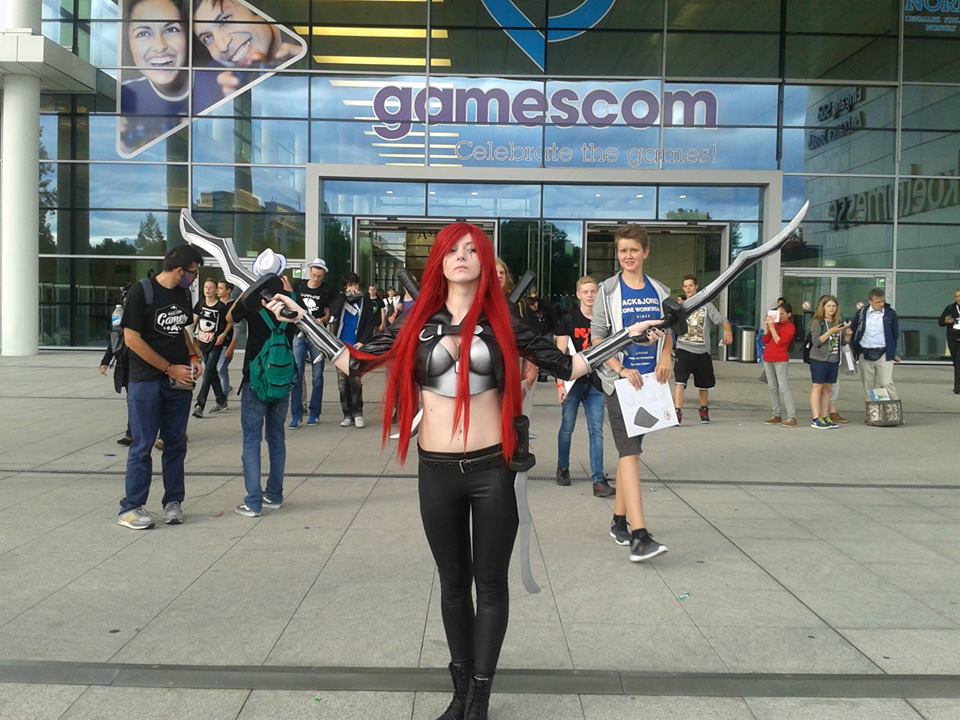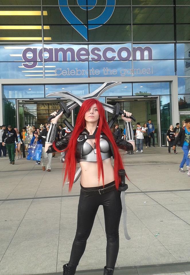 S: Można się tu rozwodzić godzinami. Wiadomo, że Gamescom jest imprezą międzynarodową, a Festiwal przy Gamescomie to kameralne przyjęcie. Na wydarzenie w Kolonii cosplayerzy przygotowują swoje stroje długi czas, pokazując się tym samym w najlepszych kostiumach. Wszędzie rozmach, fotografowie, każdy chce mieć swoje 5 minut. Na Festiwalu wystarczyło się po prostu przebrać. Luźna impreza z mnóstwem czasu na to by porozmawiać, poznać nowych ludzi, zrobić zdjęcia ze znajomymi. Porównując jakość strojów, cóż. Były i lepsze i te gorsze. Dla niektórych może być to pierwsza impreza na której się przebierają, inni siedzą w tym od lat. Sama swoją Katarinę oceniam na 4/10.