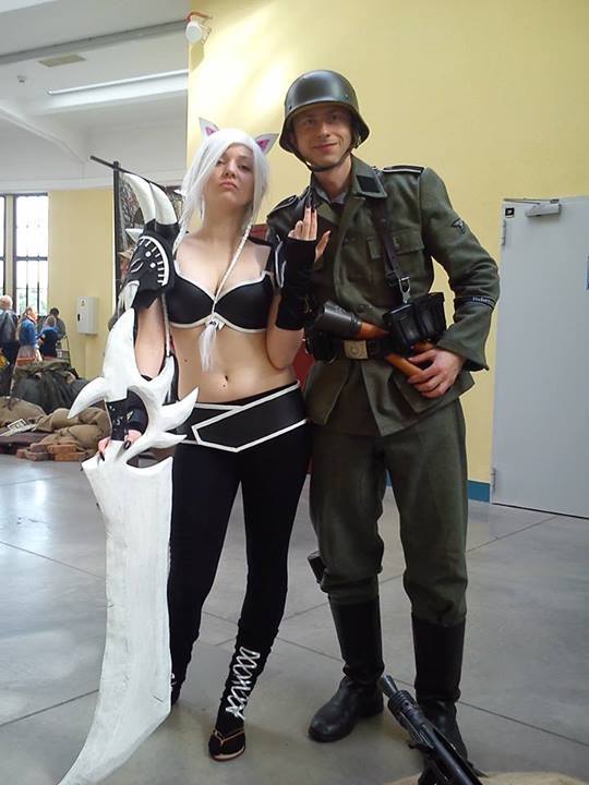 S: No, każdy musi mieć swój pierwszy, lepszy lub gorszy, raz. Wracając jednak do tematu cosplayu – konkretnej daty w pamiętniku nie zapisywałam, ale przed CD-Action Expo stwierdziłam, że to może być dobry moment na debiut. Tutaj pragnę napomknąć o Violet Cosplay, jednej z moich guru i najważniejszą inspiracją, albowiem jej „badassowy” Female Rengar był całkiem niezłym strojem, może nie najlepszym, ale wtedy podobał mi się ogólny styl i interpretacja postaci. Oczywiście pchnęło mnie to do zrobienia czegoś podobnego, co niestety nie było nawet w 10% tak dobre. Śmiało mogę powiedzieć, że do dziś trzymam fotki WIP Rengara Violet w specjalnym fa… w folderze z inspiracjami. Mój strój, z racji, że kończyłam jego obróbkę o 8 rano w pokoju hotelowym tuż przed wyjściem na konwent, wielkim sukcesem nie był. Jednak pomógł mi przełamać bariery nieśmiałości, wstydu i kompleksów. Dumna z niego specjalnie nie jestem, ale miecz na ścianie w pokoju powiesiłam i muszę przyznać, że wygląda całkiem epicko.
