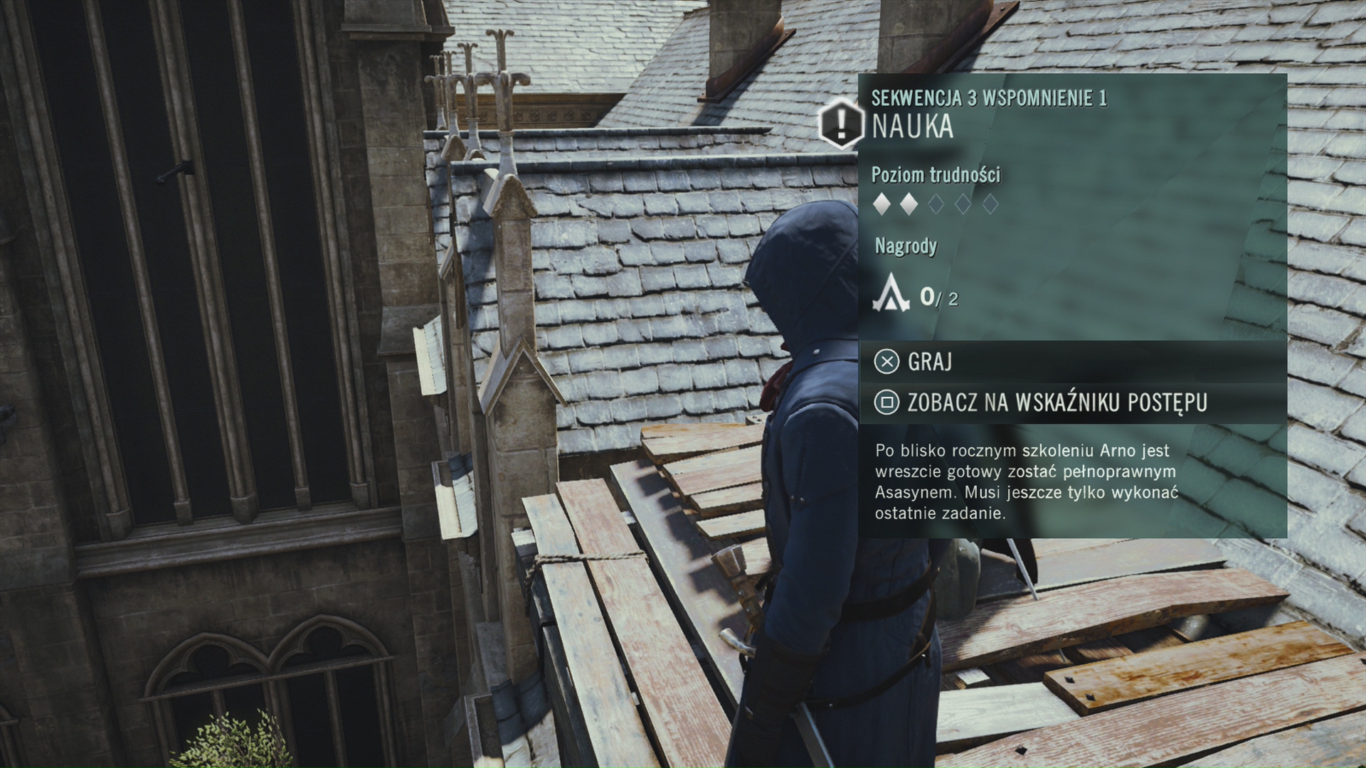 Nowy jest też aspekt RPG, do tej pory występujący raczej marginalnie w serii. W Unity możemy naszemu bohaterowi zmienić oręż, wyposażenie czy też strój. Każdy przedmiot ma własne statystyki, które dodatkowo możemy wzmacniać ulepszeniami. Podobnie jest z umiejętnościami Arno. Odblokowujemy je, zdobywając doświadczenie. Jest to zupełnie nowy system dla serii i jeszcze się do niego nie przyzwyczaiłem. W poprzednich grach kierowany przez nas bohater zawsze posiadał odpowiednie umiejętności. W Unity sami decydujemy co i w jakiej kolejności odblokowujemy. Aby strzelać z pistoletu nie wystarczy go kupić w sklepie – wcześniej musimy odblokować odpowiednią zdolność. Cały nasz dobytek przeniesiemy później do trybu wieloosobowego.