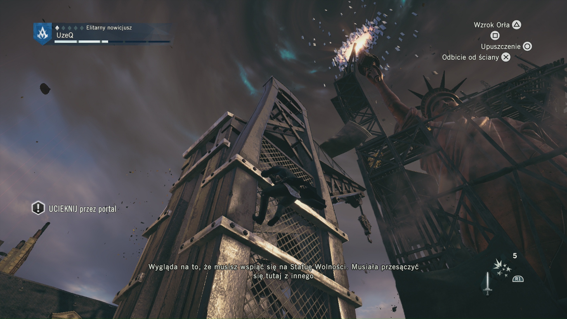 Jednak moim zdaniem największą bolączką jest mechanika. Do tej pory grając w gry z serii nie miałem najmniejszych problemów z sterowaniem. Kontroler stawał się przedłużeniem moich rąk, a kierowana przeze mnie postać w większości wypadków robiła dokładnie to, co chciałem. Tak samo jest w Rogue. Shay biegnie dokładnie tam gdzie sobie tego życzę. Arno ma z tym jednak problemy. Nigdy wcześniej nie czułem się tak, jakbym walczył ze sterowaniem, które co chwila rzuca mi kłody pod nogi. O ile jeszcze wspinanie się jest do zniesienia, tak zupełnie nowa, szeroko reklamowana, mechanika schodzenia jest straszna. Totalnie nie rozumiem na czym ona polega, a kontrolowana przeze mnie postać robi co chce i nigdy nie ląduje tam gdzie sobie tego życzyłem. Być może wymaga to ode mnie jeszcze trochę treningu, ale nie zmienia to faktu, że jest to dość frustrujące.