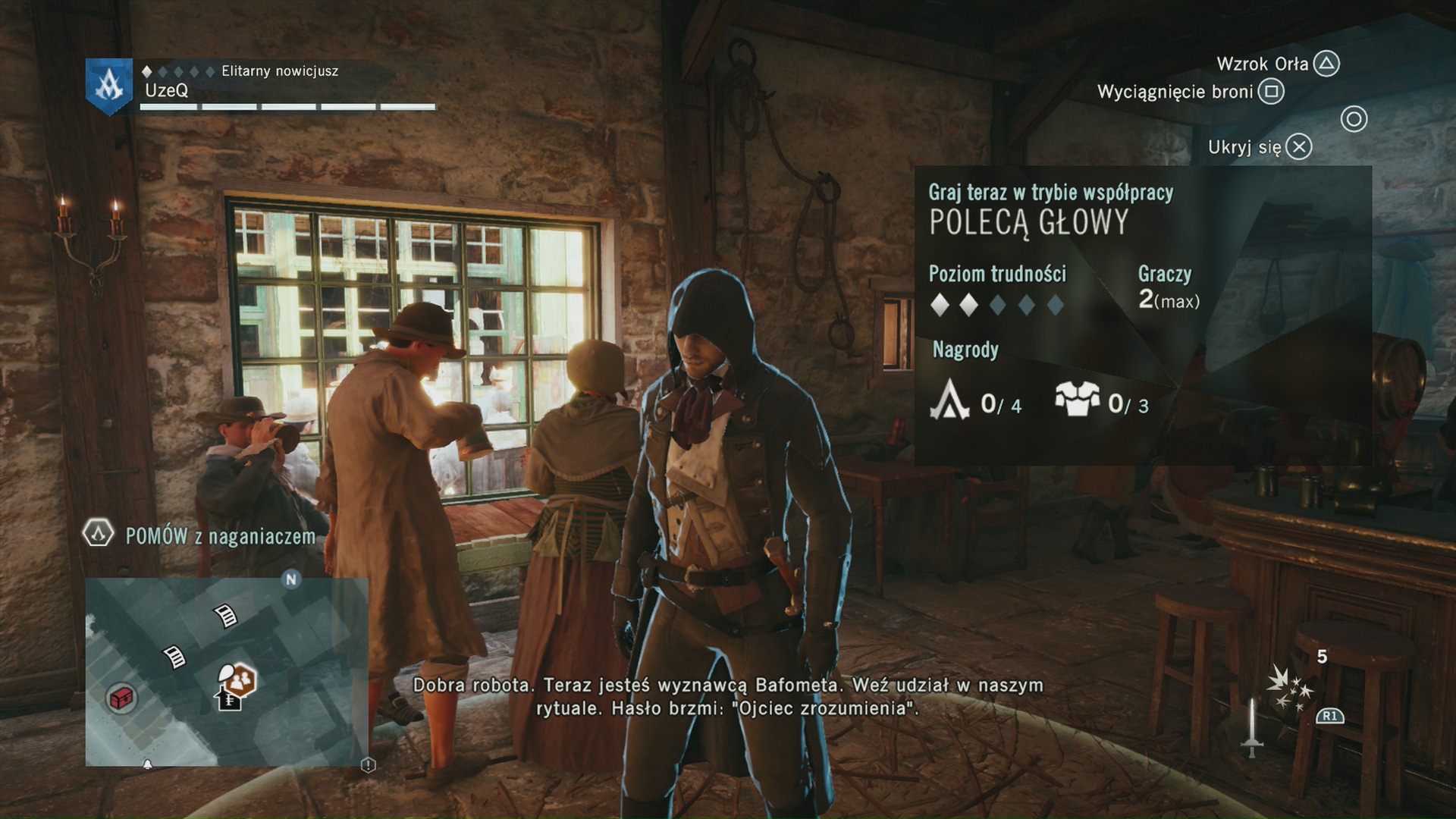 No właśnie – tryb sieciowy. Od razu warto zaznaczyć, że Rogue jest go zupełnie pozbawiony. Unity na dobrą sprawę też, gdyż po znanym z poprzednich odsłon multi ślad zaginął. Zamiast tego Ubisoft przygotował dla nas misje kooperacyjne. Możemy wraz z 3 przyjaciółmi przechodzić dodatkowe zadania. Są one kompletnie opcjonalne, nie wpływają na fabułę gry, co powinno ucieszyć miłośników singlowej rozgrywki. W misje coopowe gra się fajnie, jest to ciekawa odskocznia i spory powiew świeżości dla serii. Misje te mają jednak jedną zasadniczą wadę – ciężko się w nie gra z losowymi graczami. Jest to bolączka wszystkich skradankowych produkcji online. Jeśli nasz zespół nie jest zdyscyplinowany i zgrany, to nie ma mowy o doskonałym zorganizowaniu akcji. Nie muszę chyba uświadamiać, że ciężko znaleźć takich graczy. Najlepszym sposobem na te misje jest zabawa z przyjaciółmi z włączonymi mikrofonami.