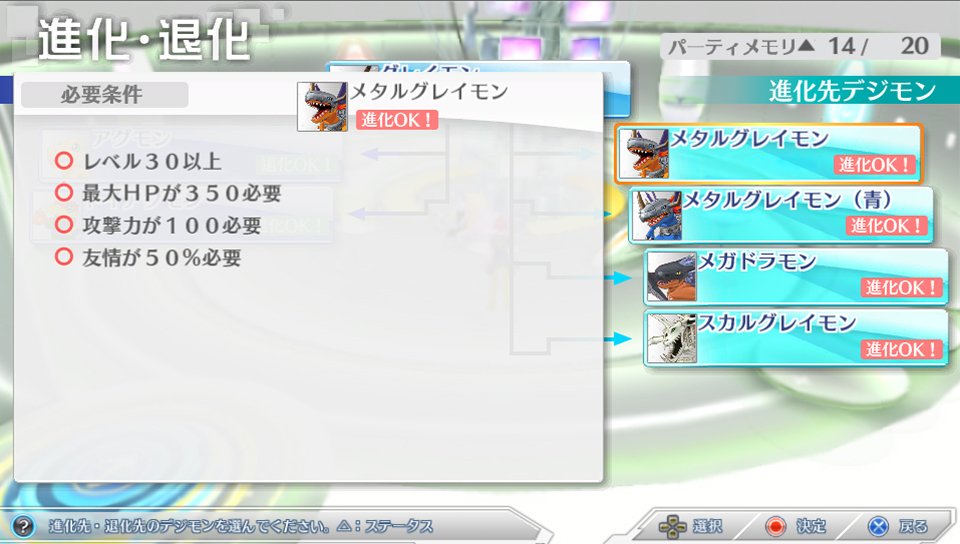 Gdy wygrywasz walki, punkty umiejętności i poziomy Digimonów wzrastają. W ten sposób odblokujecie możliwość Digivolucji w wybranego przez was Digimona. Oczywiście aby tak się stało trzeba będzie spełnić również inne warunki, która różnią się w przypadku różnych stworków. Rare Digivolution ma nam pomóc w szybszej przemianie naszego Digimona. Niektóre ewolucje będą wymagać specjalnych przedmiotów.