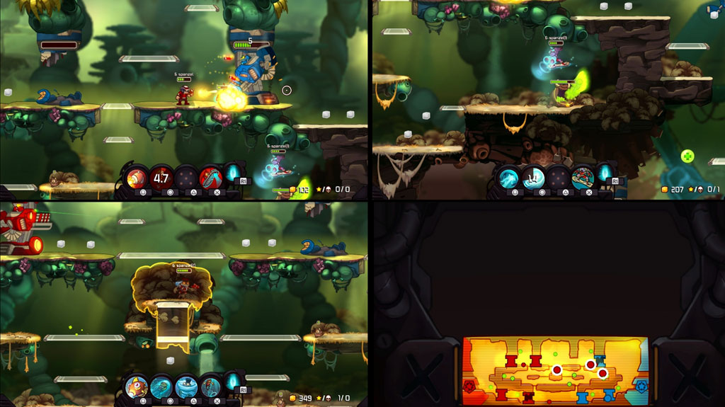 AwesomeNauts Assemble! jest również ciekawą pozycją dla graczy stroniących od sieciowych potyczek. Tryb Practice przewiduje co-opa, a zamiast żywych przeciwników wrzuca drużynę kontrolowaną przez SI z sześcioma różnymi poziomami trudności do dyspozycji. Do wyboru jest także opcja stworzenia drużyny w custom match a zamiast SI zawalczymy z przeciwnikami z sieci.