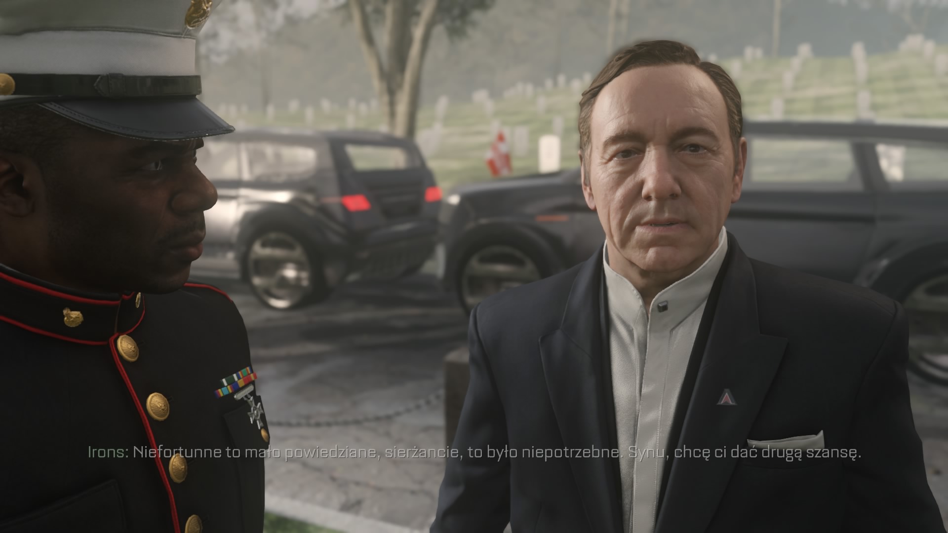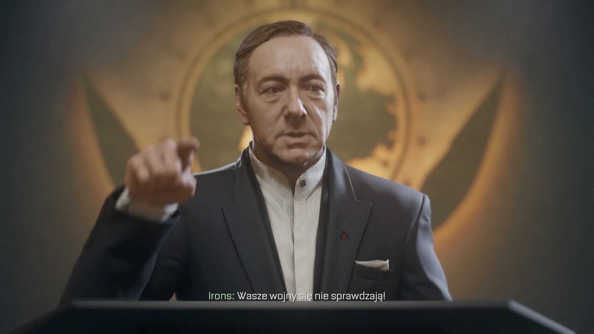 Do ekranizacji Call of Duty: Advanced Warfare Activision zakontraktowało gwiazdę amerykańskiego kina, laureata dwóch Oscarów – Kevina Spacey`ego. To ten pan, który udziela się ostatnio w radosnych reklamach zielonego banku lub popularnym serialu House of Cards. W Advanced Warfare Kevin wciela się w rolę Jonathana Ironsa, właściciela prywatnej firmy militarnej „ATLAS”. Spacey udziela granej przez siebie postaci nie tylko głosu, ale także wyglądu. Graficy z Sledgehammer Games odwzorowali Kevina Spacey`ego bardzo realistycznie, za co należą się im wielkie brawa. Dokonali tego dzięki zaawansowanemu systemowi skanowania wyglądu i animacji twarzy.