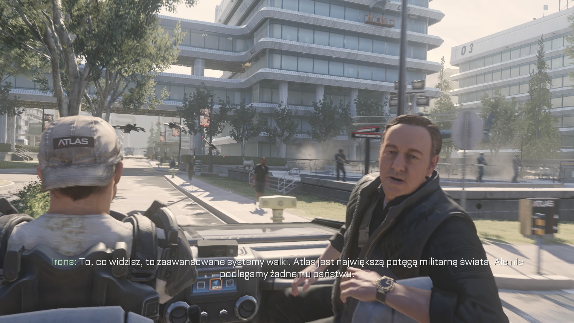 Ideą korporacji Atlas jest uwolnienie ludzkości od wszelkich wojen, niestety działania Jonathana Ironsa mają także drugie dno, ale tego dowiecie się sami kończąc kampanię. Bohater, którym steruje gracz nazywa się Jack Mitchell – w tej roli Troy Baker, słynny aktor podkładający głosy w grach (m.in. Joelowi z The Last of Us)