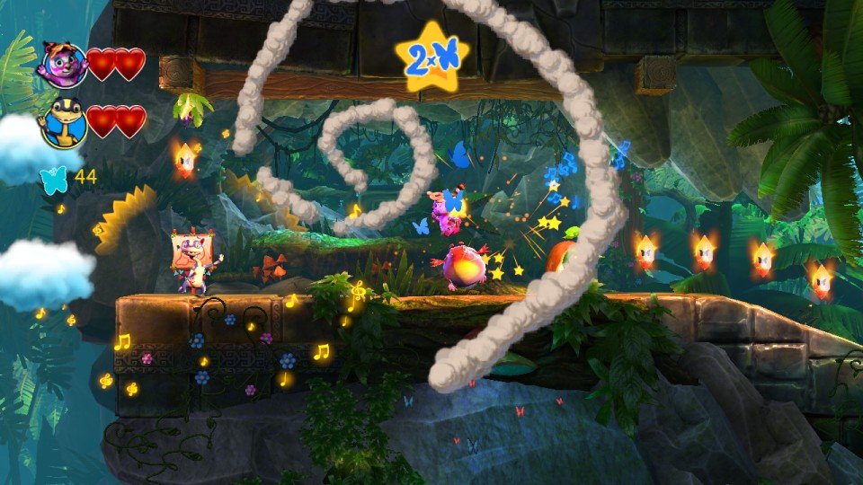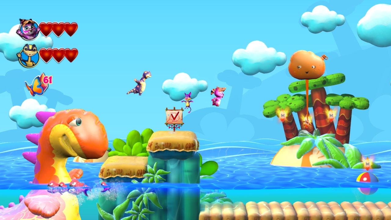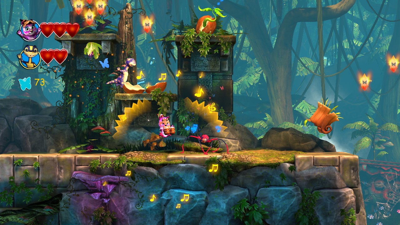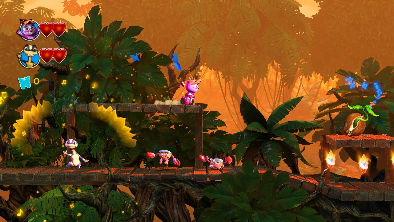 Na swojej drodze, oprócz tysięcy bursztynków do zebrania, napotkamy również cały wachlarz przeciwników; a będą to zwykłe żabki, kraby, wyżej wspomniane nakręcane myszy i inne zabawki, koniki morskie, krokodylki, słodkie babeczki, a nawet przerośniętą pełzającą galaretkę. Aby pokonać nieprzyjaciół mamy do dyspozycji kilka możliwości; albo na nich zwyczajnie wskoczymy, uderzymy specjalną szarżą, zagramy im melodyjkę, bądź uderzymy piłeczką kauczukową. Tutaj warto chwilkę zatrzymać się przy jednej z najfajniejszych umiejętności obydwu bohaterów.