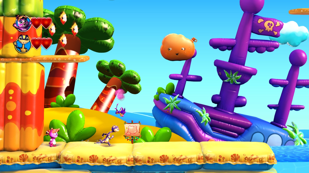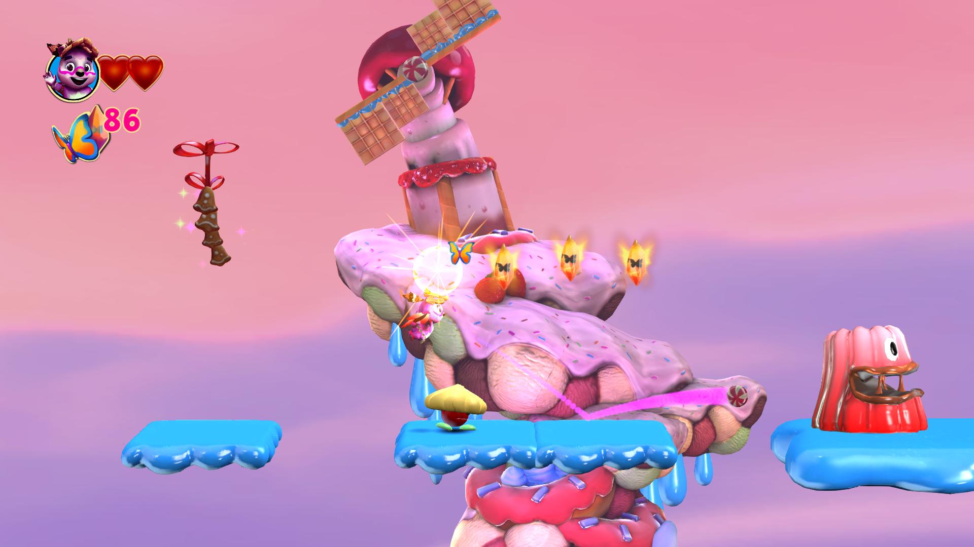 Drugą planetą jest kraina zabawek, w której to naszymi przeciwnikami są nakręcane myszki, samoloty, ufo, a nawet zabawkowi budowlańcy. Później trafimy w miejsce przywodzące na myśl wakacje nad morzem, albowiem jest tu sporo wody, w której można nurkować, piasku, palemek i kolejnych antagonistów wyglądających jak typowe gadżety dla dzieci lubiących pluskać się w morzu. Zaś ostatnim dużym światem jest region stworzony z samym słodkości – przyjdzie nam tam biegać po wafelkach, walczyć gumisiami, pływać w oranżadzie, a nawet latać na butelkach napoju gazowanego.