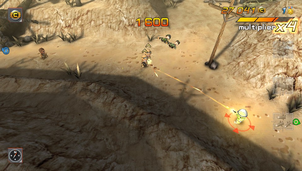 Tiny Troopers: Joint Ops to produkcja pozwalająca graczom wcielić się w żołnierzy i specjalne jednostki bojowe, aby zwalczyć przeciwnika. Tytuł jest grą zręcznościową o izometrycznym ustawieniu kamery. Podczas rozgrywki można korzystać z broni palnej (niestety, jedynie karabinu – nie ma nawet zwykłego pistoletu do wyboru), ale także wzmocnień oraz ataków specjalnych.