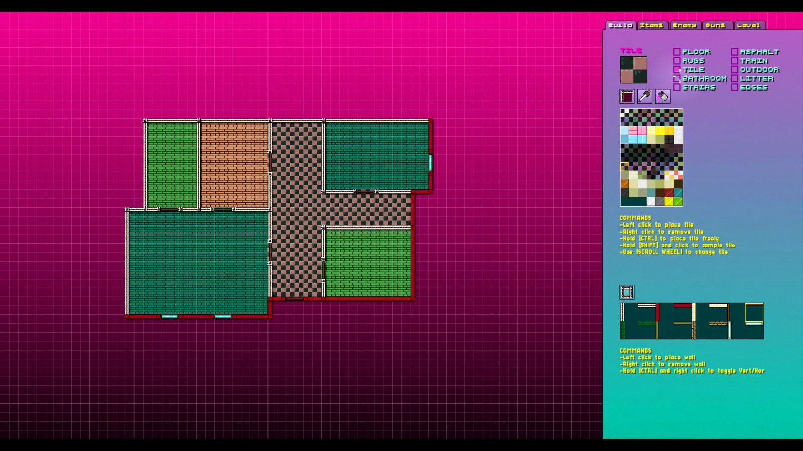 Poniższe obrazki przedstawiają pierwsze kroki w edytorze poziomów – wybór układu/layoutu, nanoszenie wrogów i gra, aż do momentu ujrzenia pięknego obrazu Jacksona Pollocka.