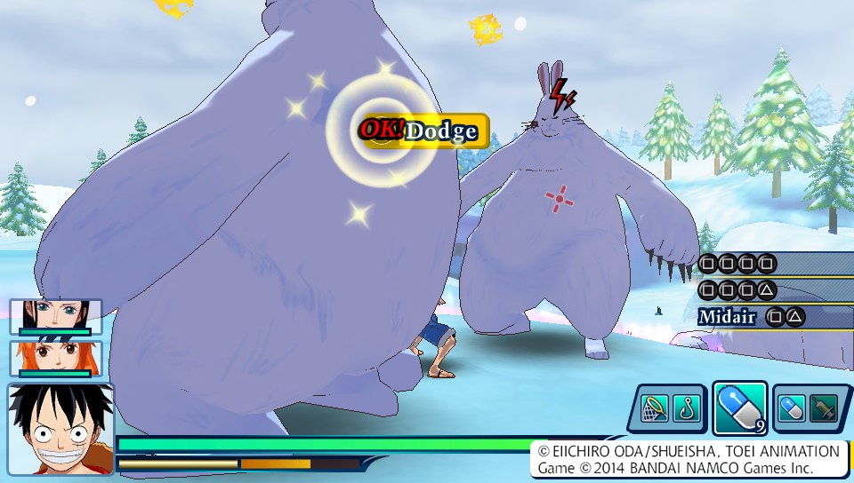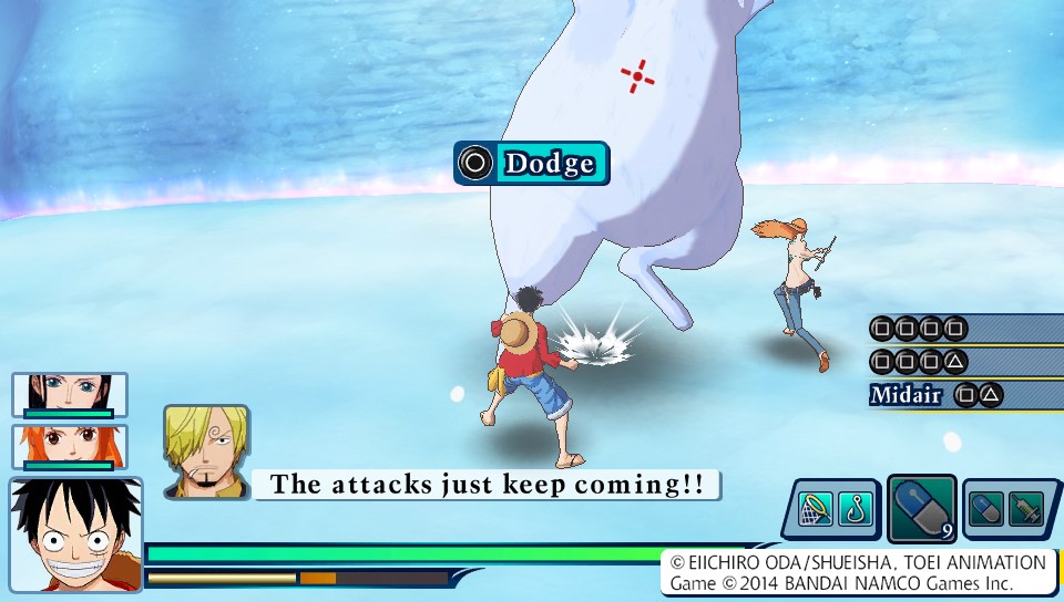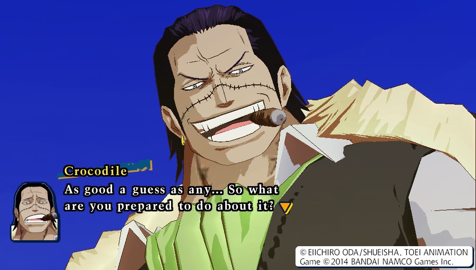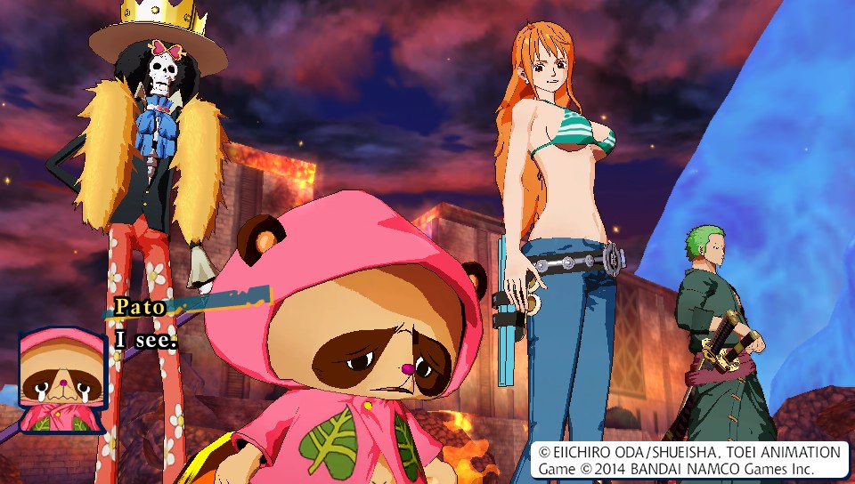 Naszym głównym antagonistą jest Patrick Redcliff. Czytelnicy mangi lub widzowie anime mogą nie kojarzyć tego typka, gdyż został on stworzony przez Eiichiro Odę, specjalnie na potrzeby gry. To samo tyczy się Pato, przypominającego jenota stworka, którego poznajemy już na samym początku gry. Zaangażowanie w produkcję gry autora mangi czuć wszędzie. Fabuła i projekt postaci nie pozwalają nam zapomnieć w jakim uniwersum się znajdujemy.