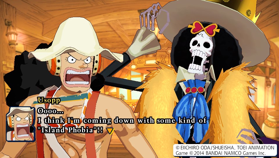 Wszyscy bohaterowie wyglądają dokładnie tak, jak w anime po dwuletnim przeskoku od wydarzeń z Marineford. Niektórzy czytelnicy mogą się zastanawiać, o czym ja w ogóle piszę. Jest to słuszna reakcja, gdyż gra jest kierowana jedynie do osób dobrze znających uniwersum i będących na bieżąco przynajmniej z wydarzeniami z anime. Bossowie to w większości główni antagoniści z danego arca. Gra nigdy nie stara się wytłumaczyć z kim właśnie walczymy, nawet nie tłumaczy kim są nasi protagoniści. Po prostu, nie znając przygód Słomkowych będziecie czuli się zagubieni. Produkcja jest po brzegi wypełniona przeróżnymi smaczkami odnoszącymi się do telewizyjnego anime i w kilku miejscach do filmów kinowych.