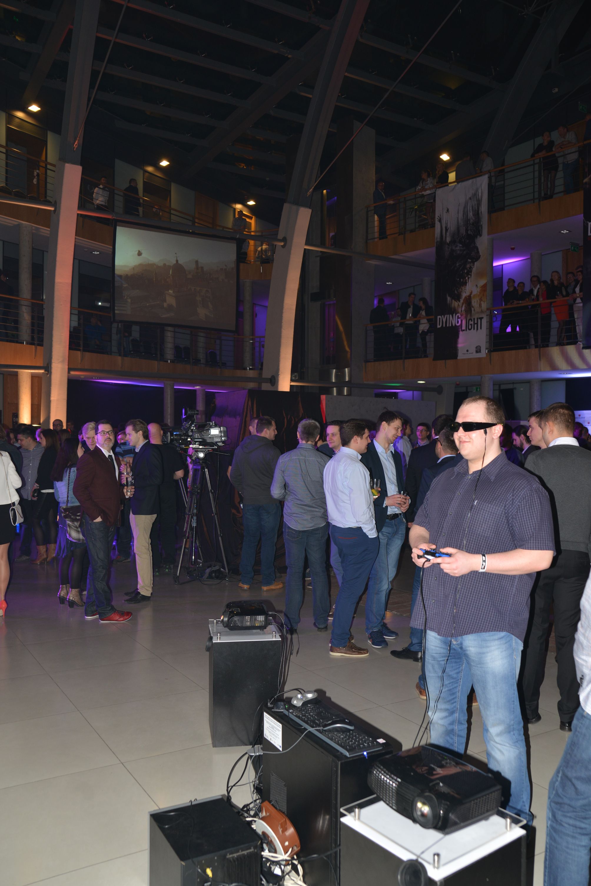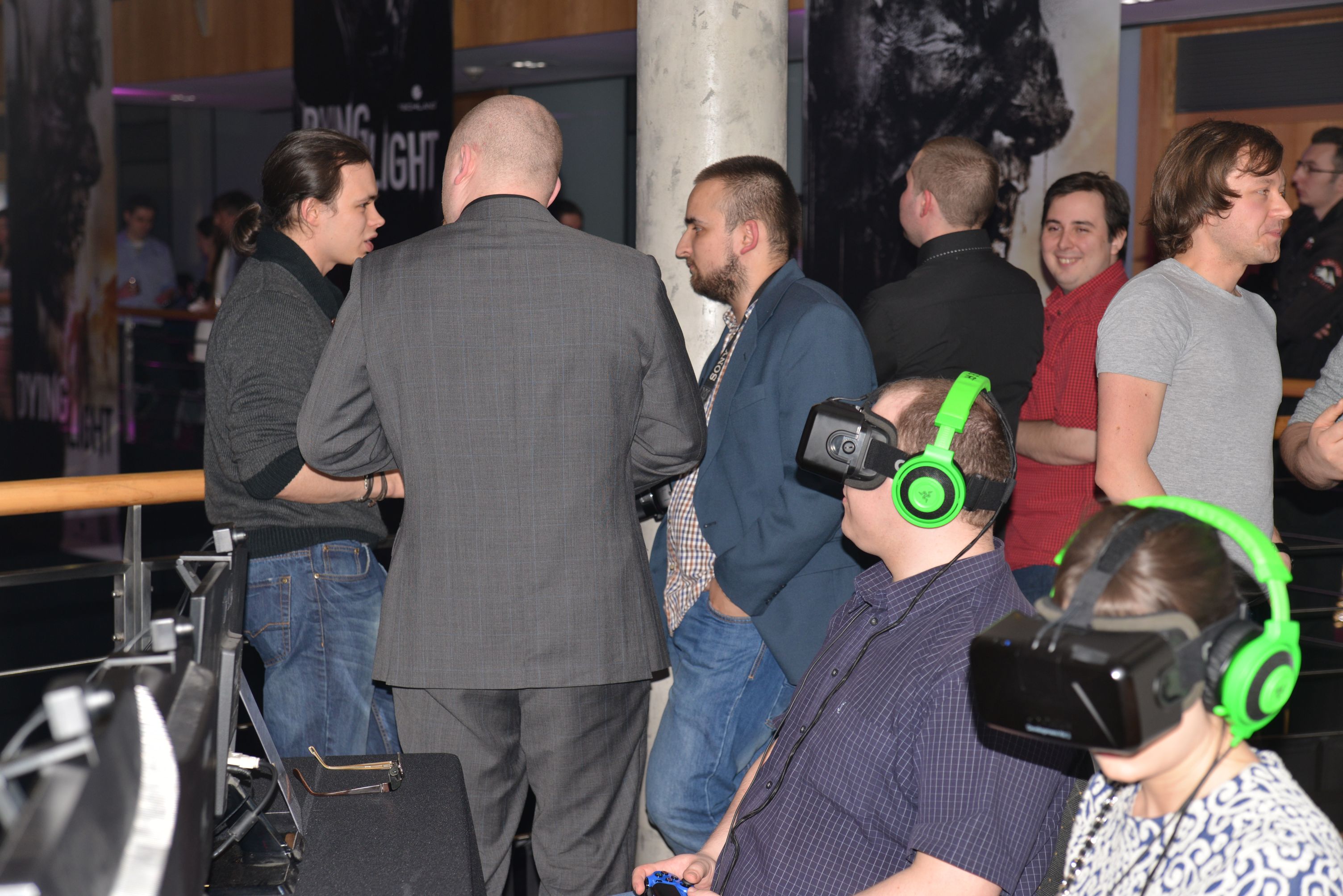 Liczne atrakcje miały zapewnić nam dodatkową rozrywkę. Mimo fajnego pomysłu z turniejem celebrytów i barmańskich pokazów, to Oculus Rift przyciągnął nas najbardziej. Od siebie mogę powiedzieć, że poświęcę temu oddzielny artykuł, ale już samo miejsce dawało do myślenia. Na pierwszym piętrze, gdzieś obok kolumny, udało się Techlandowi ulokować trzy komputery z ekranami odwróconymi w stronę osoby naprzeciwko gracza. Wystarczyło usiąść, założyć Oculusa na głowę, poprawić słuchawki, złapać za pada i przed twarzą widziałeś zombie.