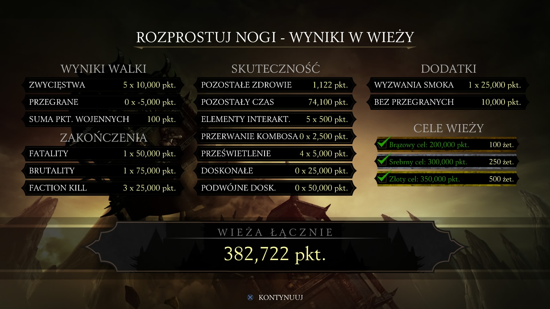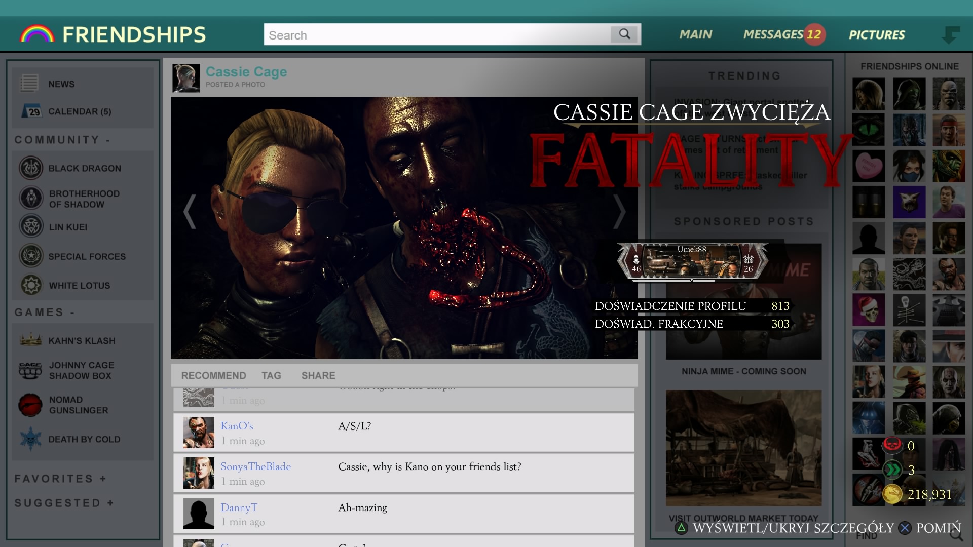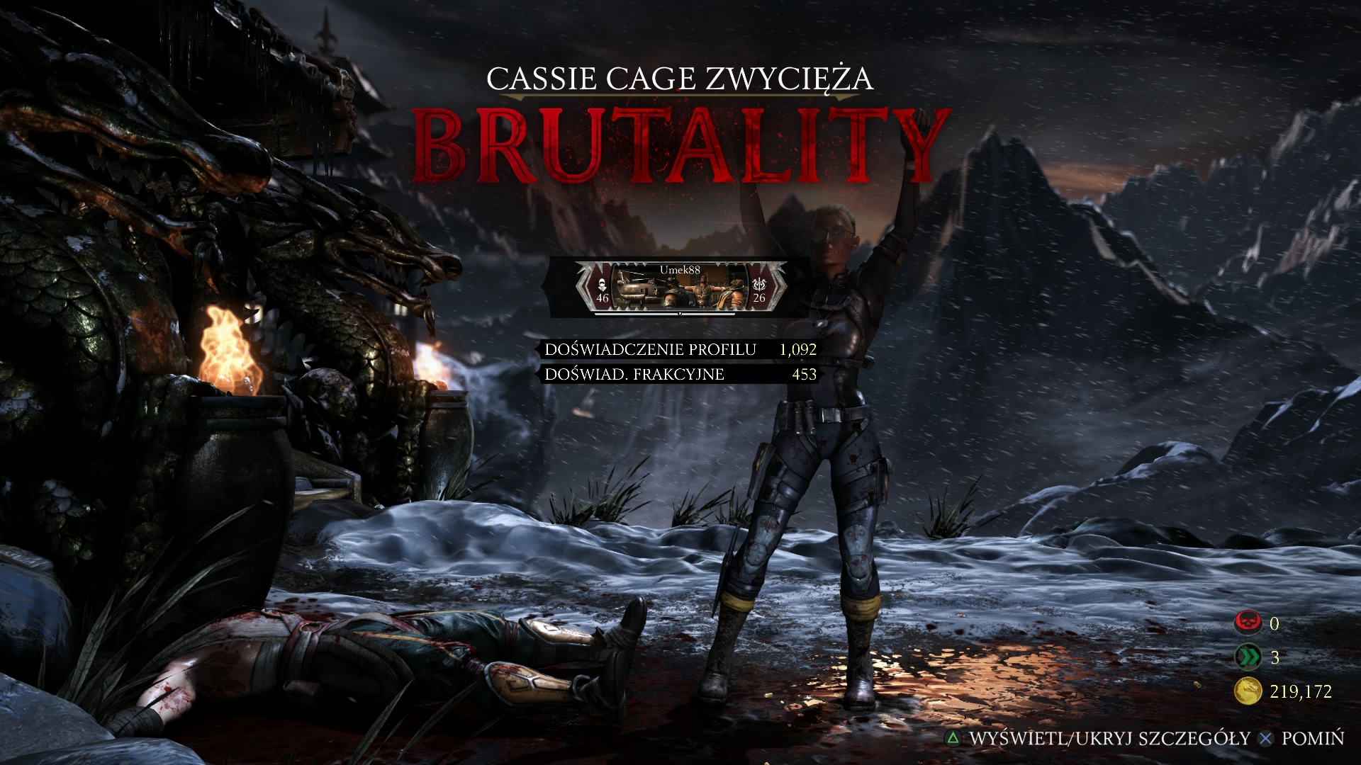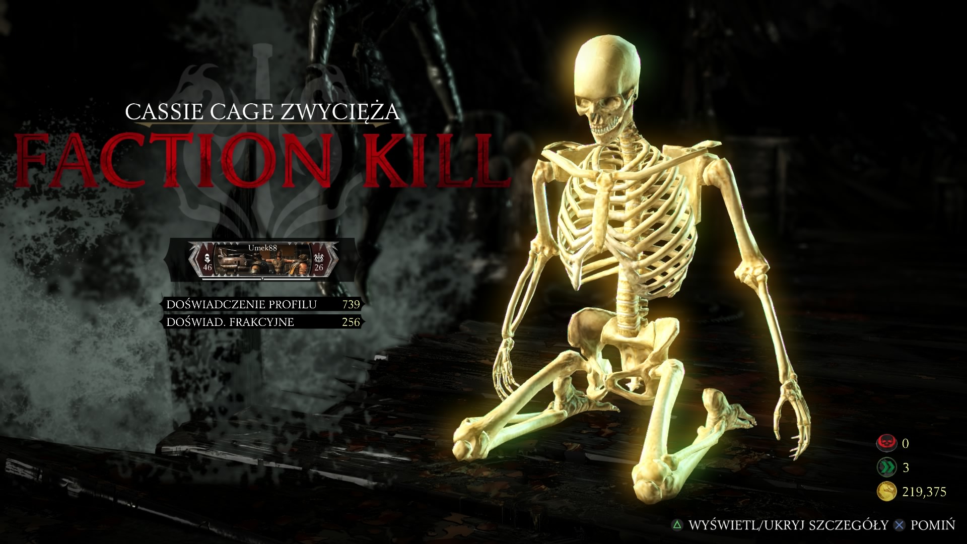 Nowością są również wojny frakcji. Po pierwszym uruchomieniu gry wybieramy jedną z pięciu grup: Lin Kuei, Black Dragon, White Lotus, Brotherhood of Shadow lub Special Forces. Od razu dodam, że możemy je zmieniać w każdej chwili. Wszystkie nasze działania przyczyniają się do zwiększania puli punktów frakcji. Po tygodniu, zwycięski klan zyskuje bonusy w postaci nowych wykończeń frakcyjnych czy innych niespodzianek. Jednak musicie pamiętać, że zmieniając ją tracimy wszystkie dotychczasowe osiągnięcia fakcyjne bezpowrotnie. W tym nabity poziom.