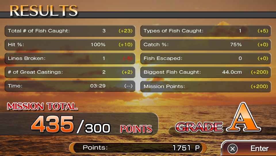 Co prawda można się bawić w porównywanie swoich sum punktowych (każda misja oceniana jest na podstawie czasu, jaki zajęło złowienie odpowiedniej liczby właściwych ryb, ich rozmiaru, trwałości zarzucanych lin), czy też kupować lepsze wędki i przynęty, ale nie zmienia to nudy towarzyszącej Reel Fishing. Na pewno też na małą popularność gry będzie miała jej cena w PlayStation Store – ponad sto złotych to skandal. Można rozważyć zakup, gdy na japońskie dzieło będzie trzeba wydać około 20 zł,a i to jeśli jest się fanem rybołówstwa.