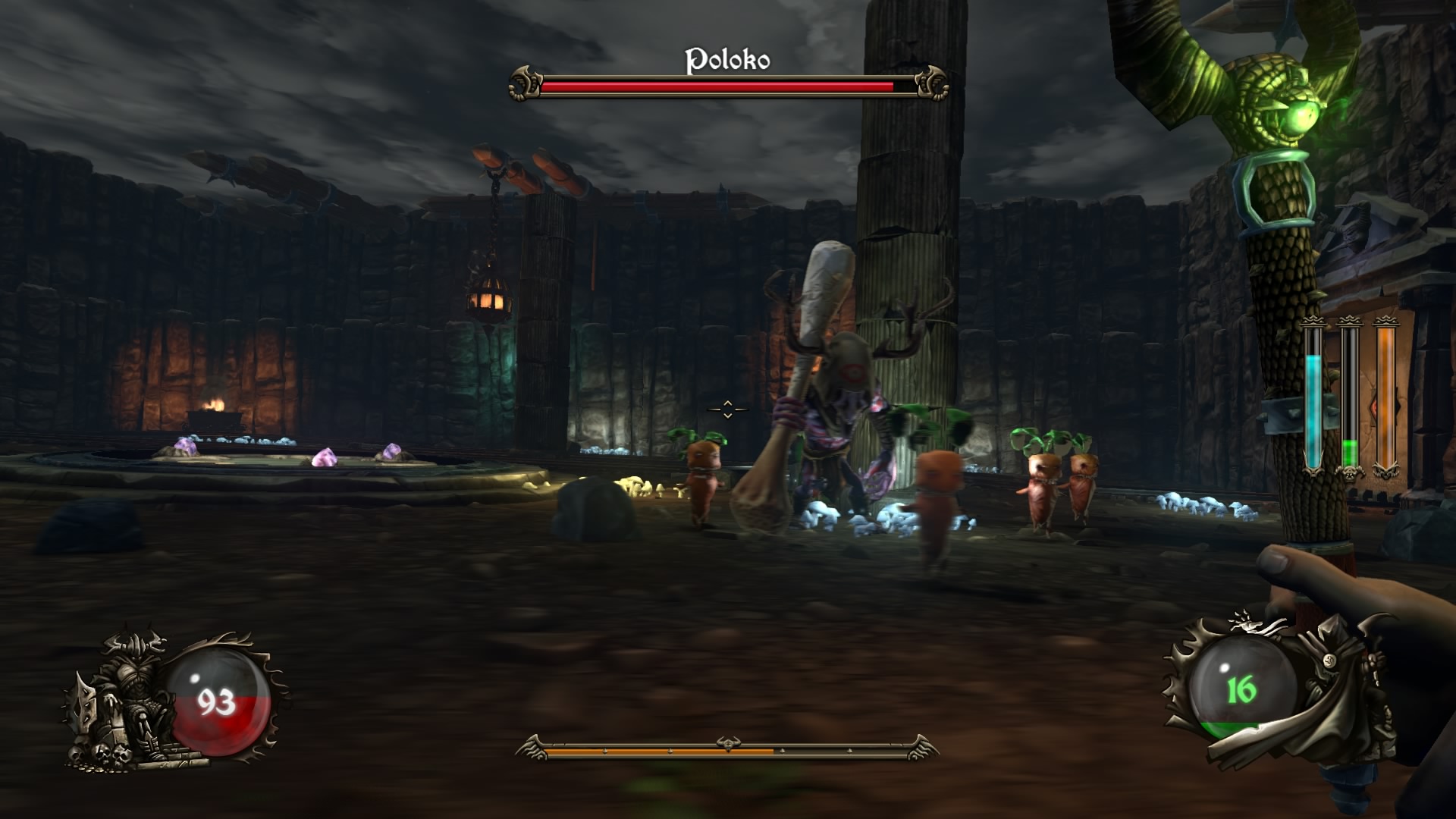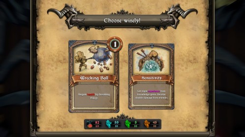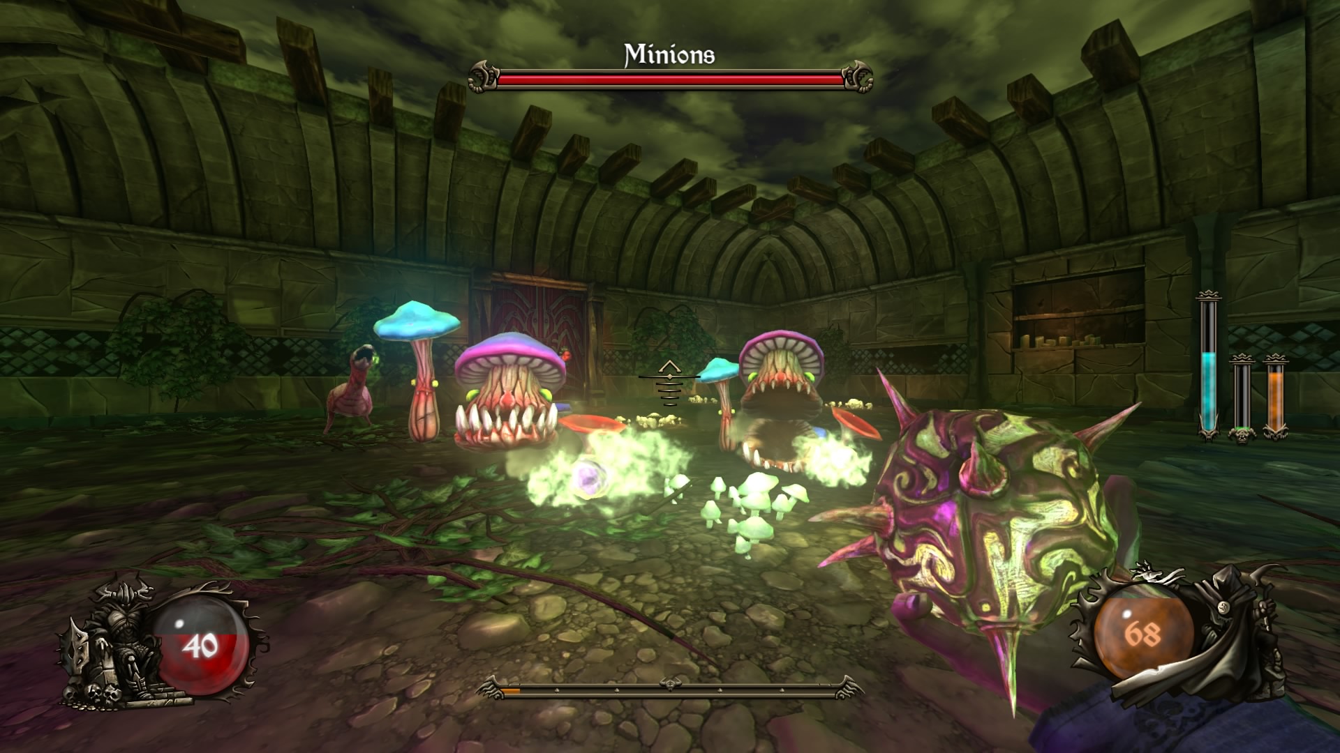 Tym orężem musimy walczyć z zastępami przeciwników, którzy zostali dobrani tu brawurowo. Mamy do ubicia maszkary pokroju goblinów szamanów, demonów, wiedźm, golemów, szkieletów, ale także dużo sympatyczniejsze jak popsute marchewki, demoniczne grzyby, toksyczne rośliny czy ślimaki bez skorupek. Podczas starć jesteśmy zamykani w lokacji, aż nie wybijemy wszystkich, o czym informuje nas na bieżąco pasek postępu pojawiający się na ekranie. Szybko znikające znajdźki jak i latające wszędzie pociski różnej masy, zmuszają nas do dynamicznego i taktycznego poruszania się po planszach. Na każdym piętrze musimy znaleźć klucz do portalu, z którego wyłoni się boss. Po pokonaniu go przenosimy się na kolejne piętro. Niestety tu leży największy problem gry, bo po 5 bardzo do siebie podobnych piętrach dochodzimy do ostatniego bossa, nie wyróżniającego się szczególnie, po którym czeka nas już tylko zamknięcie fabuły kilkoma obrazkami i paroma zdaniami tekstu, po czym dostajemy podsumowanie naszych wyników i koniec gry. Na pocieszenie, dzięki postępom w grze za zabicie konkretnych ilości przeciwników, zadanie łącznie określonych ilości obrażeń, otwarciu specjalnych skrzynek odblokowują się nam nowe postacie. Łącznie jest ich 12. Różnią się oni od podstawowego maga mobilnością, ilością many, zdrowiem i podobnymi cechami. Nie robi to jednak diametralnej różnicy podczas gry, a raczej determinuje inną strategię eksterminacji i poruszania się po mapie niż inne bronie czy umiejętności, bo te zawsze są losowe.