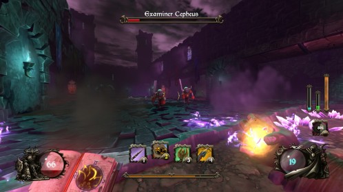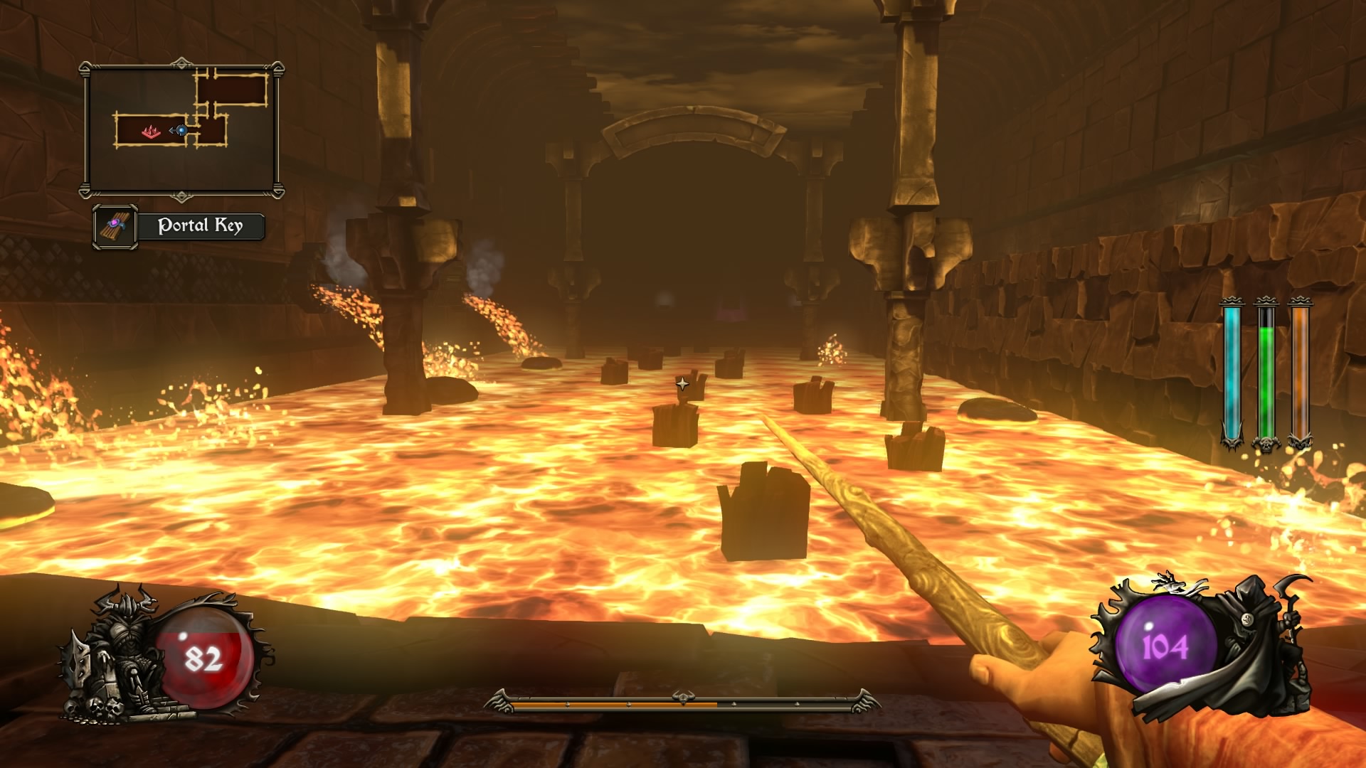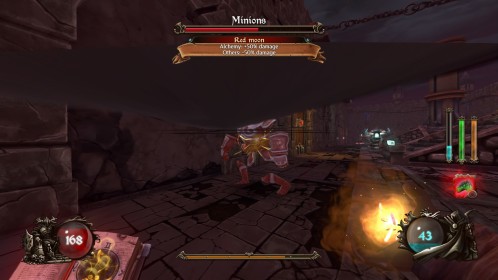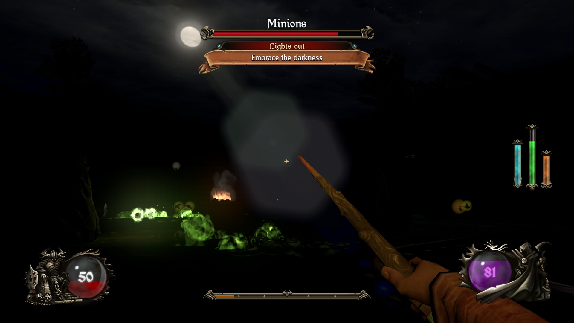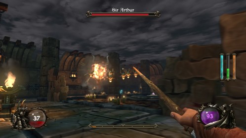 W grze mamy widok z pierwszej osoby, każdy level zaczynamy z podstawową różdżką w ręku, którą możemy jak każdą inną bronią strzelać na dwa różne sposoby. Niestety ogranicza się to najczęściej do strzelania pojedynczymi pociskami w podstawowym ataku i kilkoma jednocześnie w alternatywnym. Wspomnień z Unreal Tournament to nie przywołuje, a tylko kilka broni ma ciekawszy drugi atak. Na początku każdego starcia lądujemy na arenie z ograniczonymi możliwościami naszego czarodzieja i przechodząc kolejne pokoje, pokonujemy wrogów za zabicie których dostajemy doświadczenie. Z kolei za doświadczenie dostajemy do wyboru perki ulepszające naszą postać. I tu zaczyna się głębia tego tytułu, bo perków zmieniających naszą postać jest od groma. Wpływają one na nasze zdrowie, szybkość strzałów, przyciąganie znajdziek przez naszego maga, skrócenie paska życia kosztem many i prawie setka innych. Dodatkowo nasza postać może korzystać poza podstawową różdżką z ksiąg z zaklęciami, czarodziejskich lasek i ostatniej grupy broni czyli pistoletów, kusz, granatów – w dużym uproszczeniu z broni palnych. Każda z broni ma własną manę i o ile podstawowa do różdżki regeneruje się sama to już do pozostałych trzech musimy ją zbierać z poległych przeciwników i zniszczalnego otoczenia.