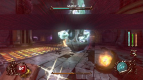 Na koniec zostawiłem kwestię oprawy audiowizualnej gry. Nie wygląda ona źle mając na uwadze ile waży, ale jak na standardy konsol nowej generacji można mieć znacznie wyższe wymagania, zwłaszcza że silnik Unity potrafi dużo więcej. Dźwięk to tło i nie ma w nim nic zapadającego w pamięć. Grafika jest estetyczna i to najlepsze, co można o niej powiedzieć. Wrogowie i efekty cząsteczkowe są miłe w odbiorze, jest dużo rozmycia, ale można je wyłączyć w opcjach. Gorzej jest z lokacjami, które pomimo, że są niewielkie nie pokazują dużego kunsztu grafików. Otoczenie jest bardzo jednolite i często się powtarza, co może zaskakiwać w tak krótkim tytule. Ponadto gra potrafi klatkować, czasami gubi je całymi garściami co może utrudnić nam grę, a nawet nadgryźć poziom zdrowia podczas większych potyczek. Dodatkowo do kotła minusów dołożyć muszę doczytujące się tekstury na horyzoncie. Czasami otwierając drzwi do komnaty widzimy, że za następną tekstury nie wczytały się i widzimy pustkę. Sporadycznie występują też błędy graficzne zasłaniające część ekranu. Boli także, że gra nie posiada nawet kinowej polskiej wersji językowej i jest w pełni nastawiona na pojedynczego gracza, a jedyne społecznościowe elementy to tablice wyników.