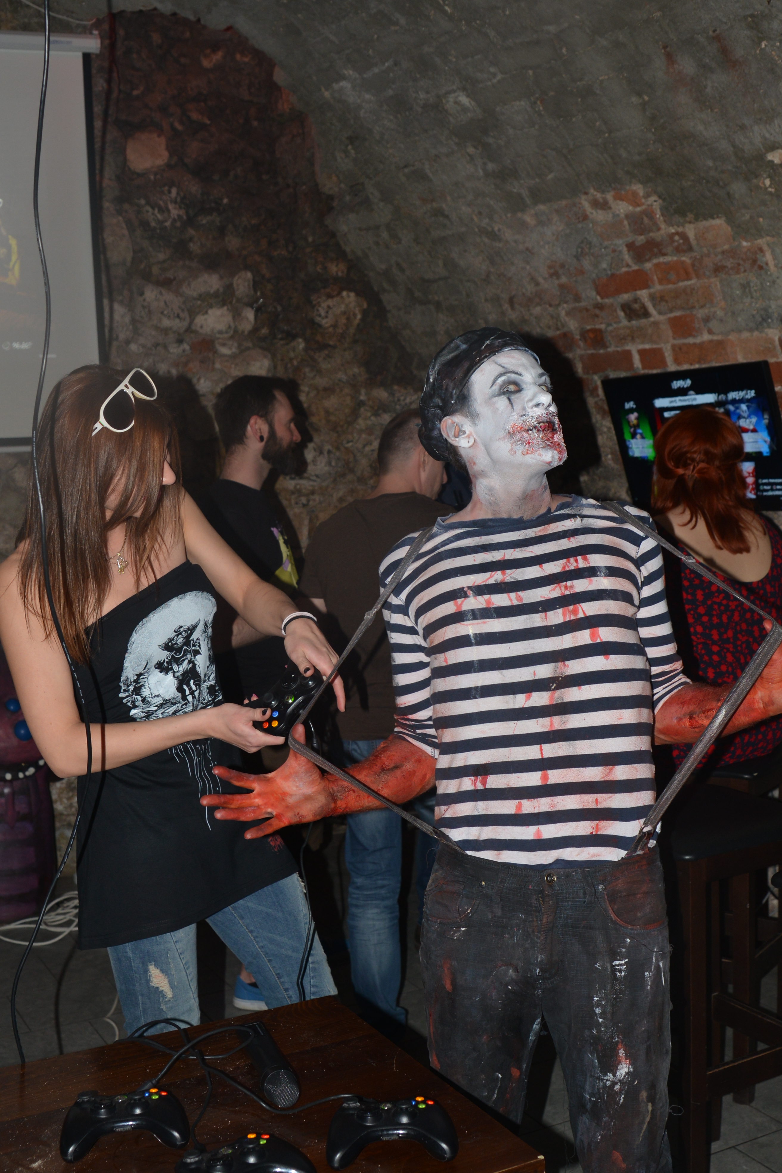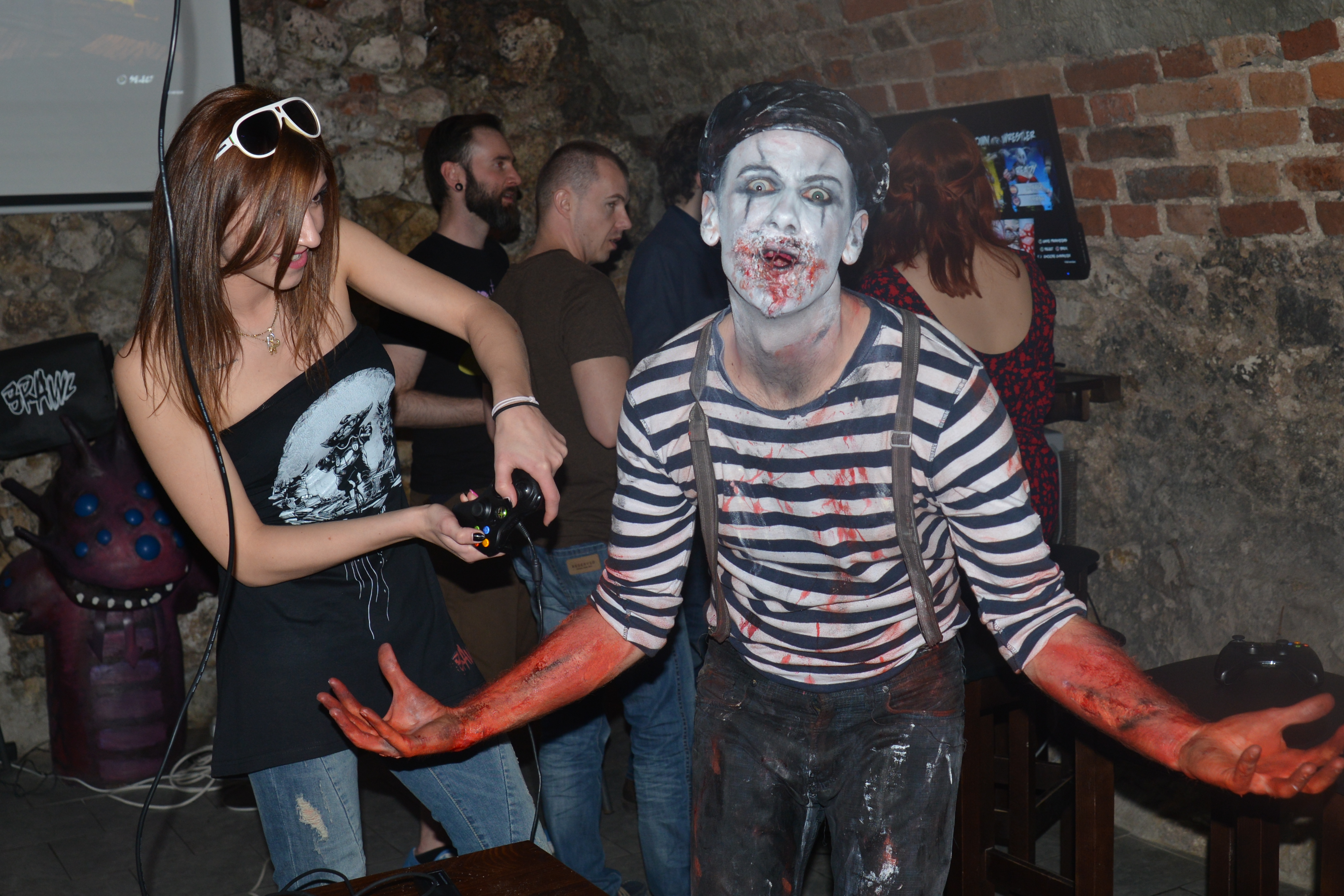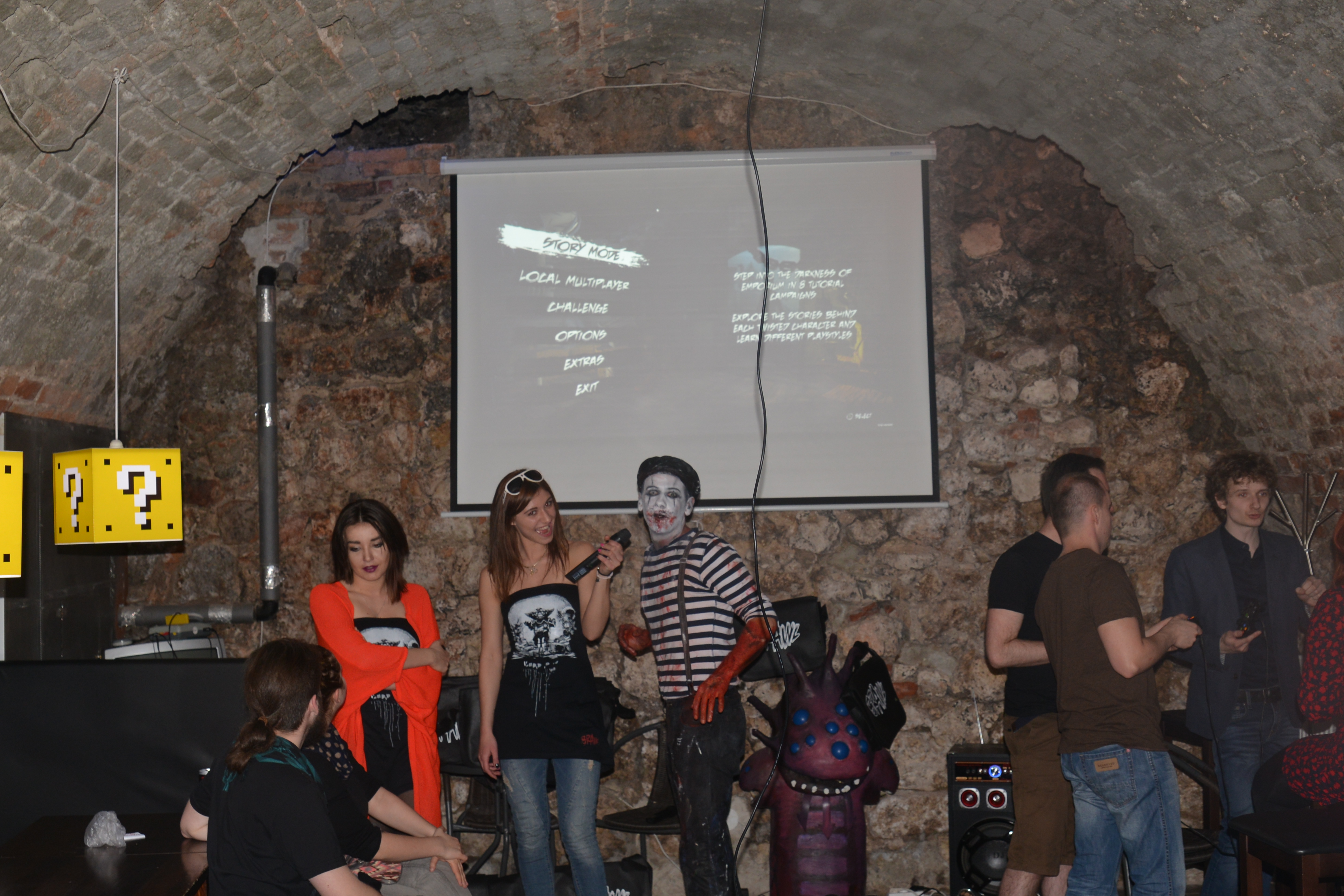 24 kwietnia, Kraków. Aparat w dłoń i krótki spacer z hotelu na rynek. Dobra lokalizacja. Impreza miała rozpocząć się o 19:00 w Cybermachinie. Kilkanaście minut po byłem już na miejscu. Przywitał mnie mim, jedna z postaci Brawla, który towarzyszył potem ludziom podczas trwania całego eventu.