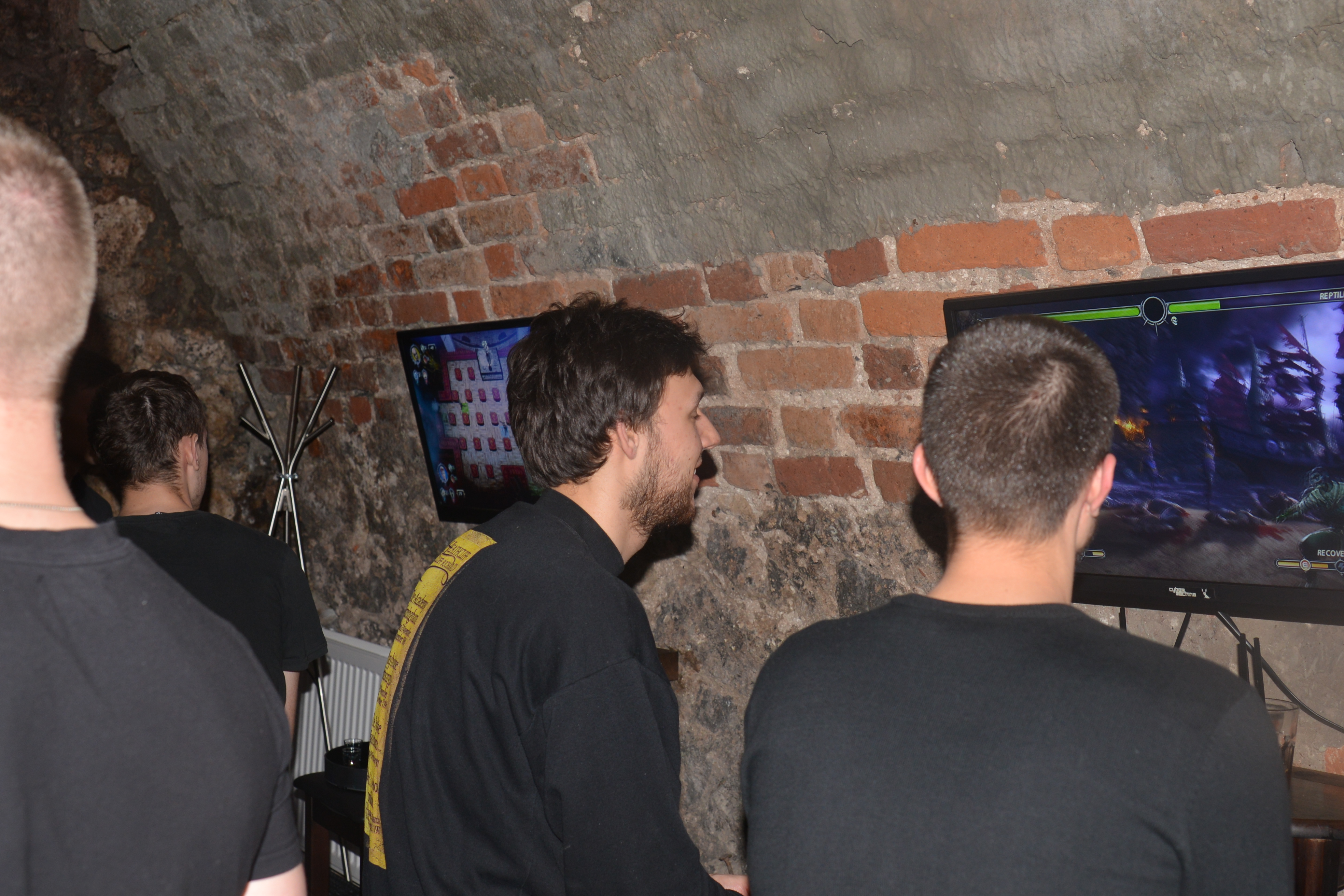 Cybermachina to fajny lokal. Game pub. Pomijając brak zasięgu w głównej części lokalu, reszta sprawdza się równie dobrze jak warszawskie lokale dla graczy, do których ja osobiście jestem bardziej przyzwyczajony. Można wpaść, złapać jedno piwko, pograć w Guitar Hero, Fifę czy jakieś bijatyki. Tym razem większość sięgała po drinki nazwane od bohaterów gry i siadali do Brawla.