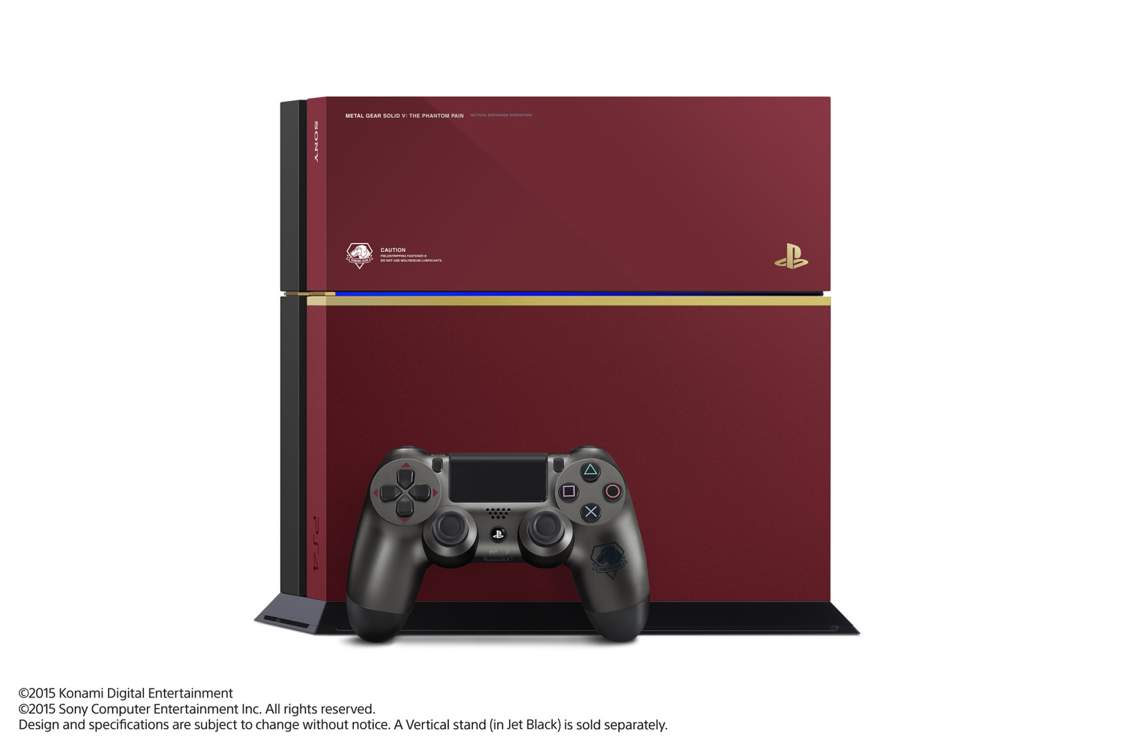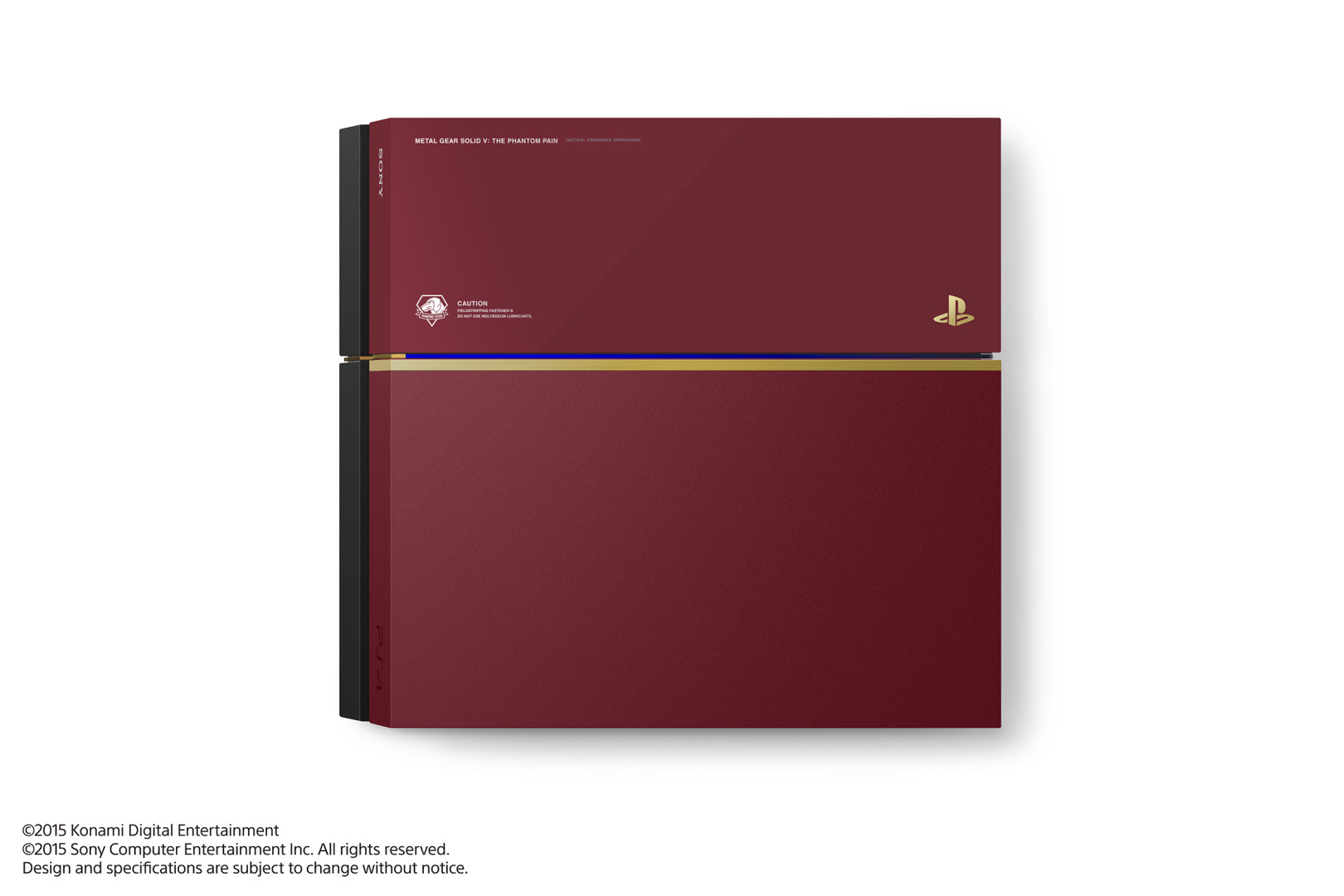 System PS4, znajdujący się w pakiecie, dostępny będzie w kolorze głębokiej czerwieni ze złotymi obramowaniami, co ma przypominać “bioniczne ramię” Snake’a. Kontroler bezprzewodowy DUALSHOCK 4 dostępny będzie w kolorze szary metalik, przypominającym broń Snake’a. Zarówno system PS4, jak i kontroler bezprzewodowy DUALSHOCK 4 będą oznaczone emblematem jednostki Diamond Dogs, prywatnej organizacji wojskowej, prowadzonej przez Snake’a. Pakiet PlayStation®4 z METAL GEAR SOLID V: THE PHANTOM PAIN będzie też dostępny z 500GB systemem PS4 w kolorze czarnym.