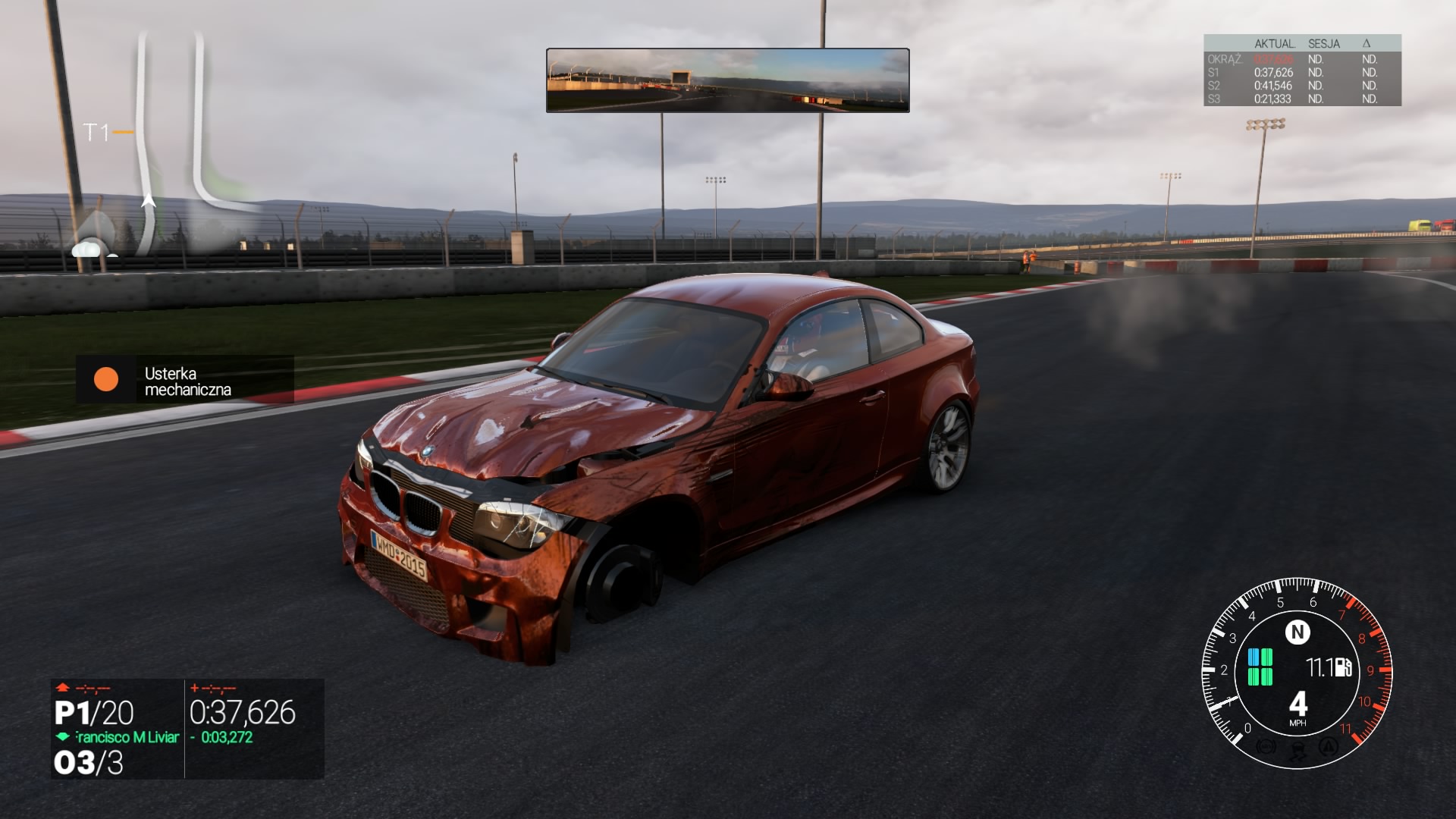 AI zasługuje na oddzielny akapit. Najgorszy, najbardziej frustrujący aspekt gry. Im bardziej zwiększymy poziom trudności przeciwników w karierze, tym bardziej stają się agresywni. Optymalnym jest mniej więcej 50/100. 0-30 wyposaża sztuczną inteligencję w nieznaną mi chorobę mózgu. Zostają na starcie, hamują bez sensu, wjeżdżają na trawę, w ściany… Tymczasem wyższy poziom zaawansowania nie przeszkadza naszym przeciwnikom we wjeżdżaniu nam w tył albo spychania z trasy. Są zaprogramowani na konkretne przejechanie okrążeń i nie dbają o obecność zarówno mnie jak i siebie nawzajem. Najgorzej ma to się jednak w przypadku kwalifikacji, gdzie praktycznie niemożliwym jest ukończenie czasowego okrążenia bez irytowania się obecnością wolniejszych przeciwników, podczas gdy ja jestem regularnie proszony o przepuszczenie szybszego rywala.