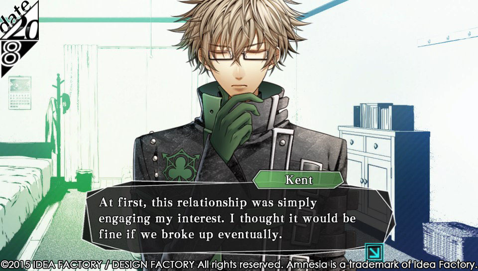 Studio Idea Factory International wydało nowy zestaw zrzutów ekranu z Amnesia: Momories przedstawiających Kenta, jednego z pięciu ofiar miłości. Kent opisywany jest jako człowiek, który ceni sobie racjonalność i logikę ponad uczuciami i jest jednym z tych, którego ścieżka wymaga inteligentnych zagrań ze strony gracza.