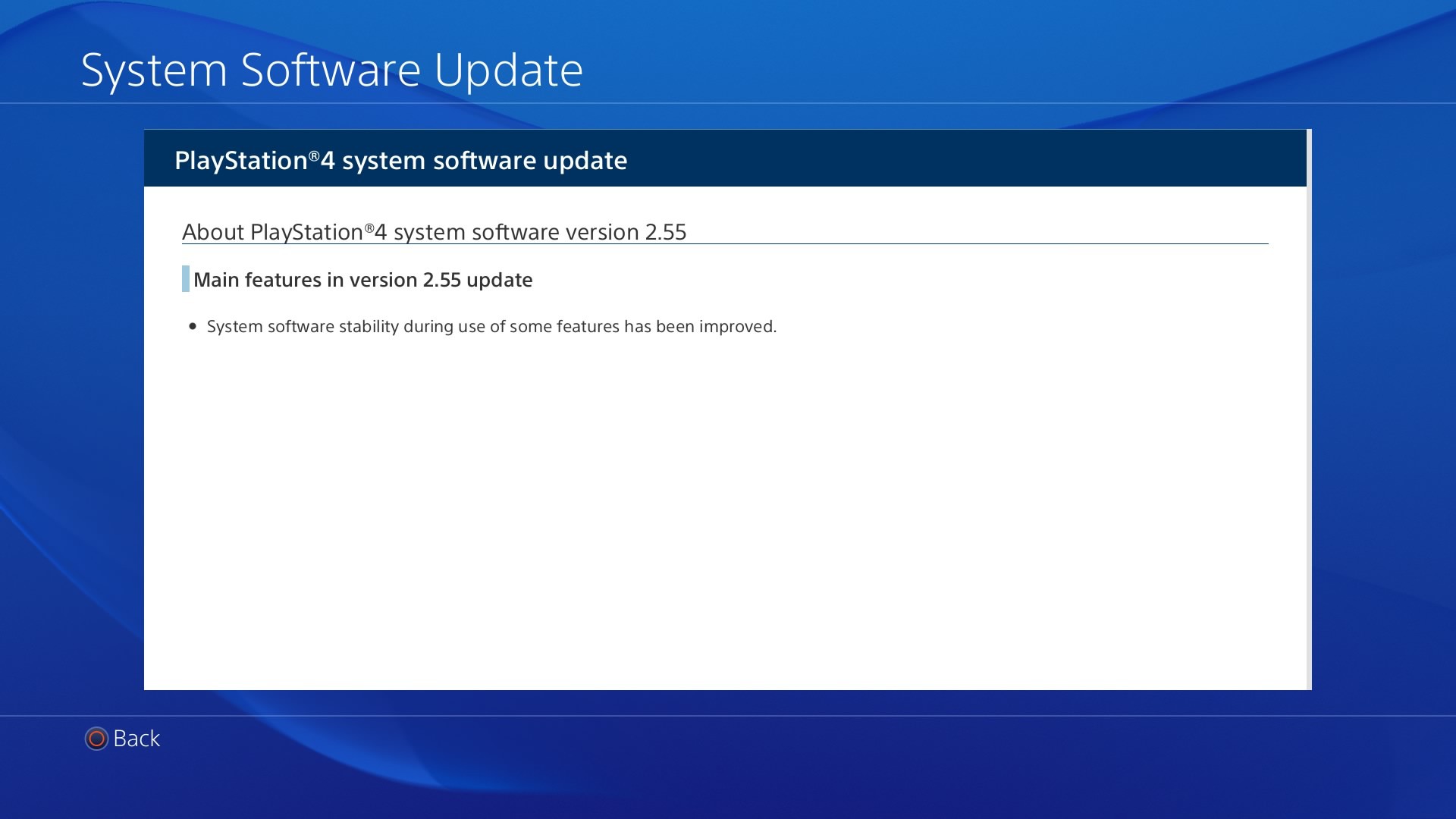 Odpalając dzisiaj konsolę waszym oczom powinno ukazać się powiadomienie o nowej aktualizacja systemu PS4 oznaczonej numerkiem 2.55. W notce zostało tylko napisane, że aktualizacja wprowadzą tylko kolejną poprawę stabilności: