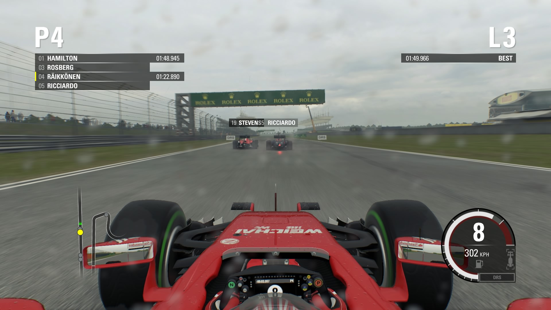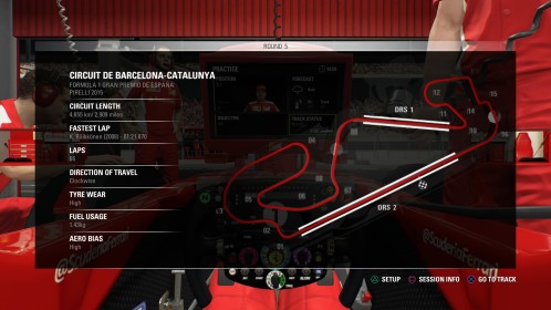 F1. Każdy sezon na początku definiujemy sobie sami. Możemy ustalić jak długi ma być trening przed każdym GP, wybrać rodzaj kwalifikacji oraz długość wyścigu. W najkrótszej konfiguracji trening trwa 15 minut, kwalifikacje są w formie one shot, czyli robimy tylko jedno kółko kwalifikacyjne oraz wyścigi, który średnio trwa około 20 minut – w zależności od długości toru jest to od 11 do 18 okrążeń. W tym czasie musimy oczywiście zajechać do boksu, aby skorzystać z innego kompletu opon.