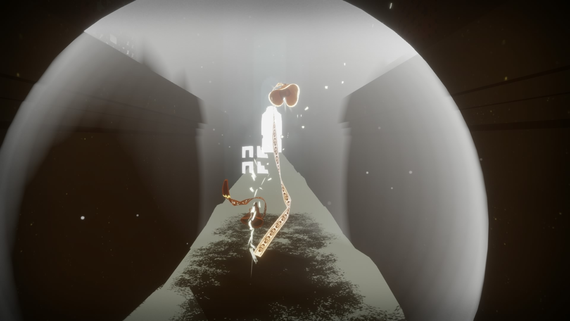 Tu zaczyna się najważniejsza dla mnie część tego tytułu, czyli tryb wieloosobowy. Grając samemu przez pierwsze pół godziny kompletnie wsiąkłem w klimat, czułem się wyjątkowo, ale też samotnie. Nagle zobaczyłem idącą postać. Poczułem się nieswojo, nie byłem sam w moim świecie. Początkowo nieufnie chodziliśmy obok siebie nie wiedząc co robić, po pewnym czasie połączeni celem biegaliśmy wspólnie, mając do komunikacji tylko ten specyficzny dźwięk. Wykonując kolejne zadania i wskazując sobie wzajemnie ciekawe miejsca wywiązała się między nami szczególna więź, zaczynaliśmy rozumieć się bez słów. W połowie przygody byłem już przywiązany do mojego towarzysza, wspólnie dbaliśmy o siebie, czekaliśmy w ważnych momentach, przyglądając się swoim poczynaniom z wyraźną troską, ogrzewaliśmy w zimnych partiach góry czy pomagaliśmy się dostać w trudno dostępne miejsca. Ważne jest, że jeśli jesteśmy blisko naszego kompana lub jego aury dźwiękowej, nasza moc skoku regeneruje się, dzięki czemu grając wspólnie możemy dosłownie latać. Dbając o tą bliskość, dającą większe możliwości odczuwamy potrzebę opieki tą druga osobą i przywiązania do niej. Zakończenie podróży zapamiętam na pewno na długo. Wyruszając w podróż kolejne razy, miałem czasami inne odczucia widząc różne sytuacje w mniej spokojnych częściach świata. Każdy gracz integruje się w inny sposób. Pisząc ten tekst chciałem mieć w tle podkład dźwiękowy z gry, po jakimś czasie obok mnie pojawił się inny gracz. Nie potrafiłem go tak zostawić, więc pograliśmy kilkanaście minut. Poczułem się jego mentorem pokazując mechaniki gry i chciałem odejść. Jednak kiedy moja postać siadała, ja zaczynałem pisać, on usiadł obok mnie i siedział, czekał aż wrócę do gry. Po kilku minutach wróciłem i przebyliśmy wspólnie przygodę. Tu nie jest łatwo się rozstać.
