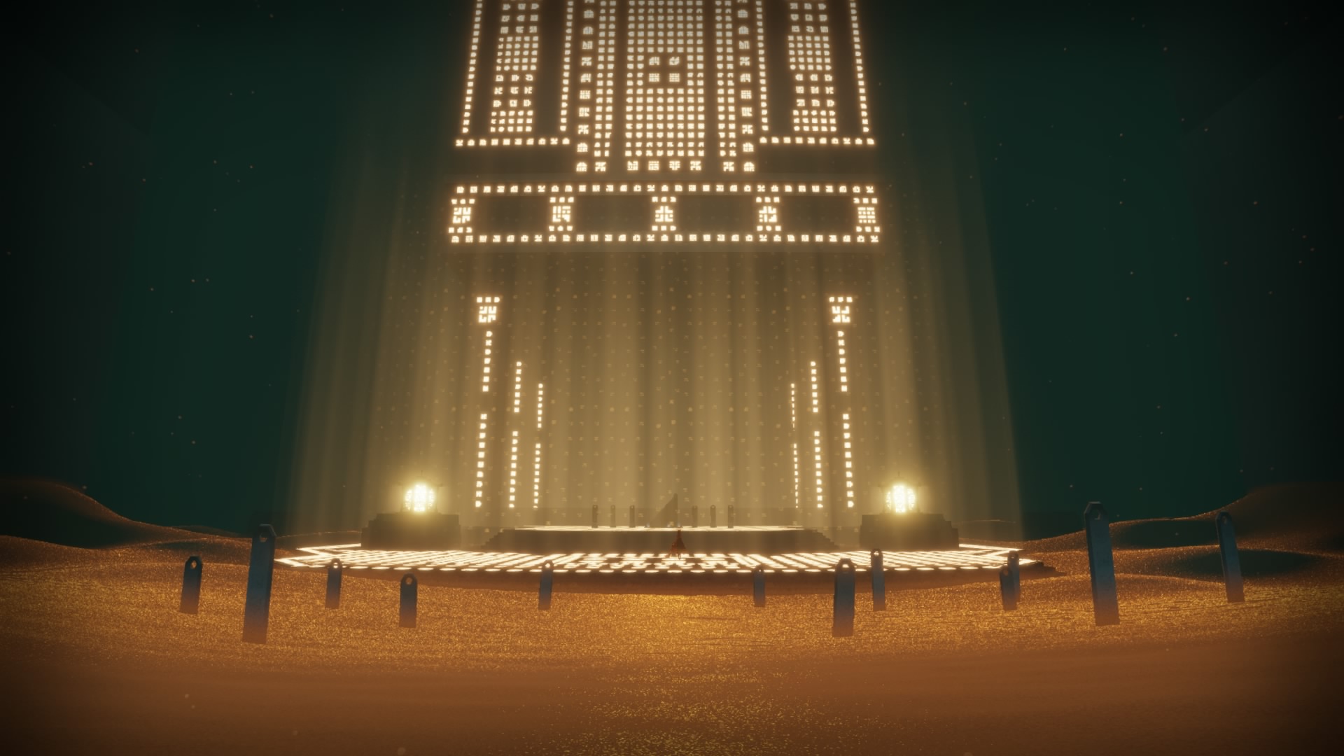 Przechodząc do samej rozgrywki, poznajemy naszego wędrowca jako samotną postać na pustyni. Bez zbędnych wprowadzeń, ścian tekstu czy narratora, gra sugeruje nam, że naszym celem jest góra na horyzoncie. Na początku poznajemy mechanikę produkcji, poruszania się po piasku, możliwości ślizgania się przypominającego serfowanie po wodzie. Następnie znajdujemy szal umożliwiający skok, ale tylko wtedy kiedy jest „naładowany”, bardzo intuicyjny system. Łapiąc odpowiednie kule wydłużamy go, dzięki czemu możemy dalej skakać, a nawet latać. W ten sposób przemieszczamy się po świecie złożonym z kilku częściowo otwartych lokacji, czasami prowadzących nas w konkretnym kierunku w określonym tempie. Podczas podróży poza rozwijaniem postaci znajdujemy ołtarze z mozaikami rzucającymi światło na historię, bo interpretacja i to co z niej wyniesiemy będzie indywidualne dla każdego. Komunikacja ze światem polega na wysyłaniu aury wyglądającej jak fala dźwiękowa rozchodząca się od naszej postaci, swoistym „bipnięciu” i pokazaniu się losowych znaków przypisanych do naszej postaci. To one zastępują naszą nazwę z PSNu.