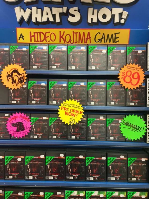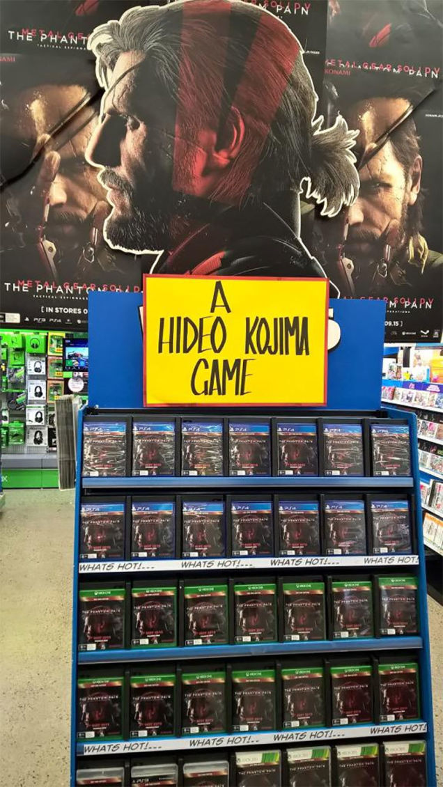 Pisaliśmy już wcześniej, że Konami ostentacyjnie usuwa nazwisko Kojimy z wszystkich materiałów z Metal Gear Solid V: The Phantom Pain. Wielu fanów nie mogło przeżyć, że pudełko z najnowszą odsłoną serii nie będzie ozdobione słowami “A Hideo Kojima Game”. Gracze jednak pamiętają. Na wystawach australijskiego sklepu JB pojawiły się informacje, że za MGS V odpowiada właśnie Hideo Kojima. Co chwila pojawiają się kolejne zdjęcia pokazujące wystrój poszczególnych sklepów.