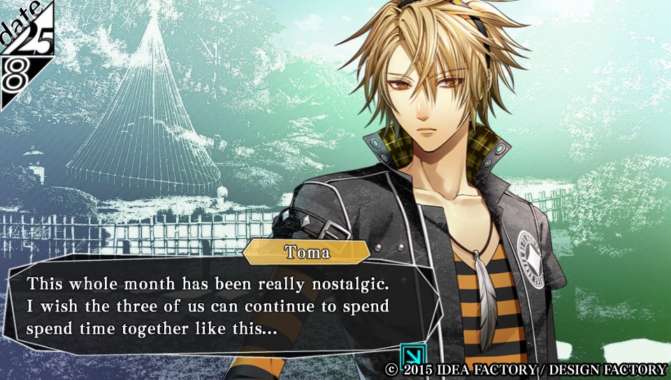 Tak, to właśnie teraz zaczyna się właściwa rozgrywka i jakże trudne nawiązywanie relacji damsko-męskich. Choć wszystkie światy są zgoła inne, to nasze pierwsze kroki odbywają się według jednego schematu: przebudzenie, rozeznanie gdzie się znajdujemy, zapoznanie się z otaczającymi nas ludźmi, a właściwie zamiarami naszego chłopaka. Historia trwa niecały miesiąc, a my przez ten czas budujemy rozmaite relacje zarówno te dobre jak i te złe, przy tym ukrywając naszą bądź co bądź chorobę. Jak już wspomniałam wszystkie cztery ścieżki, którymi będziemy podążać są inne, jednak postaci w nich występujące są cały czas te same. Co prawda za każdym razem pełnią one nieco inne role. W zależności od tego jak potoczą się wydarzenia możemy osiągnąć 3 rodzaje zakończeń: dobre, normalne czy też złe. Dzieje się to na skutek wyboru odpowiednich opcji dialogowych. Wspomniałam kilkanaście zdań wcześniej o rozpoczęciu “właściwej rozgrywki”, ale właściwie nie nadmieniłam o niej nic. Czas więc nadrobić szkolne zaległości będące zdecydowanie krótką pracą domową, którą można odrobić na przerwie między lekcjami. Nasze zadanie sprowadza się bowiem do czytania kolejnych rozmów i od czasu do czasu wybierania opcji dialogowych, które mają przełożenie na zakończenie obranej ścieżki. To wszystko, czyli nuda jak na zajęciach z “wychowania do życia w rodzinie”.