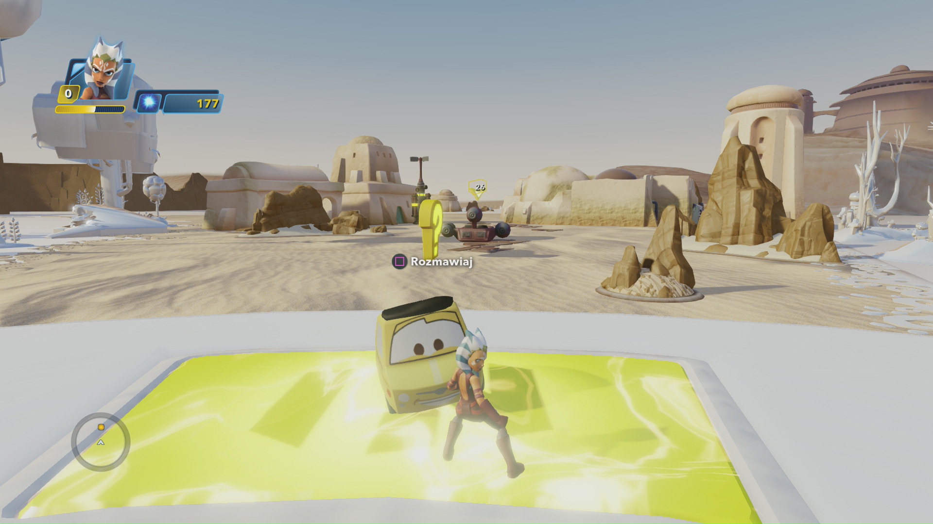 Na zupełnie innym biegunie jest tryb piaskownicy, zwany placem zabaw. To tutaj uwolnicie swoją wyobraźnie. W trybie tym możecie bez problemu łączyć postaci, światy, pojazdy czy budować własne poziomy. Chcecie pobiegać Chudym z Toy Story z mieczem świetlnym? Nie ma problemu. Macie ochotę po ścigać się z Kaczorem Donaldem? Da się załatwić. Ogranicza nas tylko własna wyobraźnia. Jeśli pamiętacie jak będąc dziećmi bawiliście się różnymi zabawkami, które nie zawsze do siebie pasowały, to tryb placu zabaw jest wirtualnym odpowiednikiem takiej zabawy. To tutaj prawdopodobnie spędzicie najwięcej czasu.